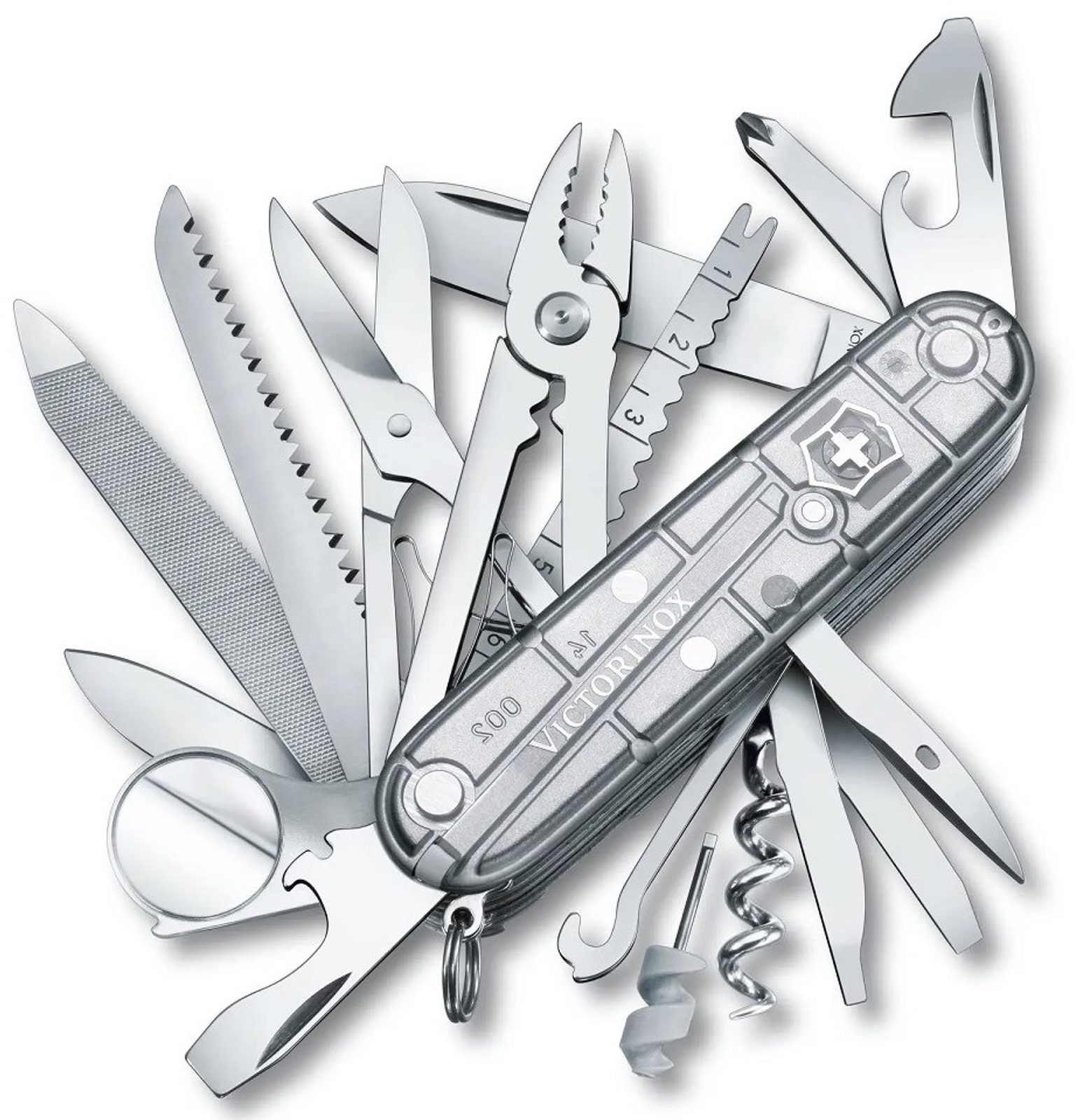 | Funkcia | Krížový skrutkovač, Guľôčkové pero, Nôž, Nožnice, Otvárač na konzervy, Otvárač na fľaše, Špáradlo, Pílka, Pilník, Pinzeta, Pravítko, Vývrtka |