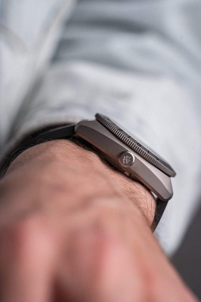 Na 41 mm titánovom puzdre je použitá matná povrchová úprava. Čierny ciferník slúži ako pozadie pre výrazné masívne ručičky a indexy - oba sú luminiscenčné. Všetko chráni zafírové sklíčko, ktoré je vysoko odolné proti poškriabaniu.