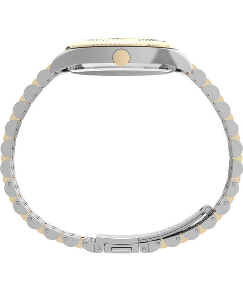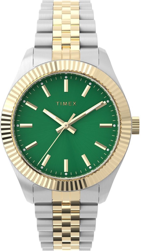 Oceľové puzdro s priemerom 36 mm má dvojfarebnú leštenú a brúsenú povrchovú úpravu. Zelený ciferník tvorí základ pre tenké luminiscenčné ručičky a indexy vo farbe puzdra. Neprehliadnuteľným prvkom tohto dámskeho modelu je elegantná vrúbkovaná luneta. Všetko chráni tvrdené minerálne sklo.