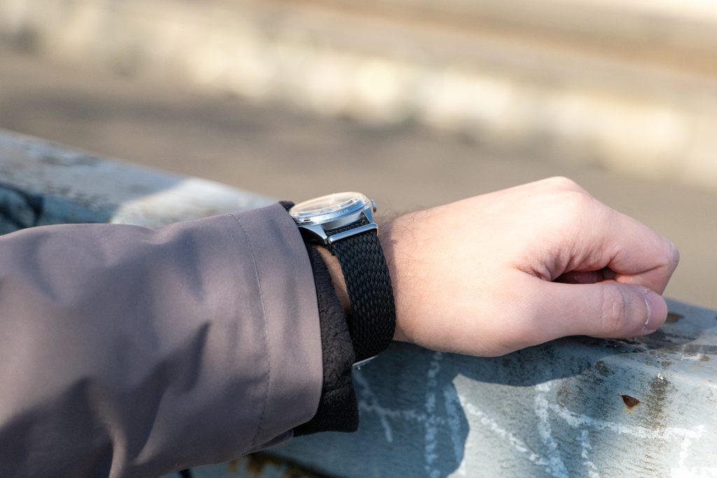 Mechanické hodinky s automatickým naťahovaním majú vodotesnosť 50 m ( 5 ATM), takže zvládnu základný kontakt s vodou pri umývaní rúk, v daždi alebo v sprche. Model je vybavený 19 mm širokým textilným náramkom, ktorý dokonale ladí s dizajnom ručičiek.