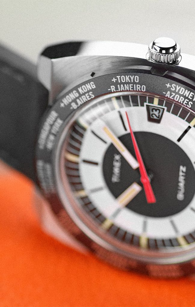 Hodinky Timex TW2V695007U z kolekcie Reissue , ktoré sú reedíciou hodiniek Timex World Time 1972, oživujú jedinečný dizajn zo 70. rokov.