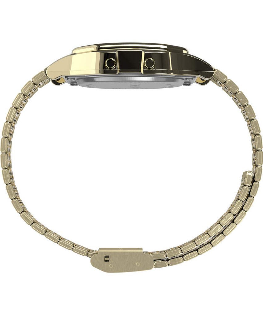 Živicové puzdro hodiniek s priemerom 34 mm je vyhotovené v zlatej farbe. Ciferník s retro nádychom výstižne odkazuje na digitálne hodinky z 80. rokov. Vo vnútri sa nachádza digitálny ciferník s podsvietením Indiglo, ktorý je vybavený funkciou budíka a zobrazením dátumu, dňa v týždni a mesiaca. Všetko je chránené minerálnym sklíčkom.