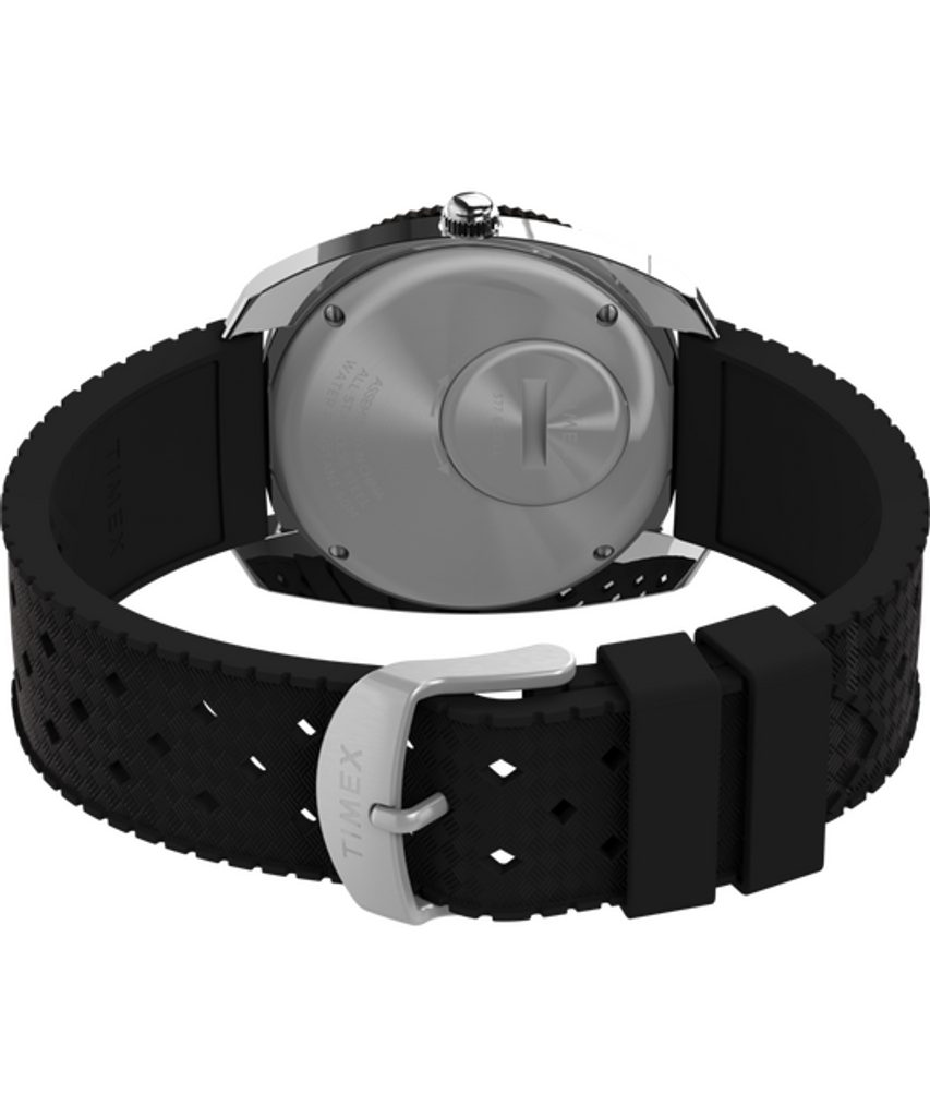 Quartzové hodinky napájané batériou majú vodotesnosť 50 m ( 5 ATM), vďaka čomu zvládnu základný kontakt s vodou pri umývaní rúk, daždi alebo sprchovaní. Model je vybavený čiernym gumovým remienkom so šírkou 20 mm.