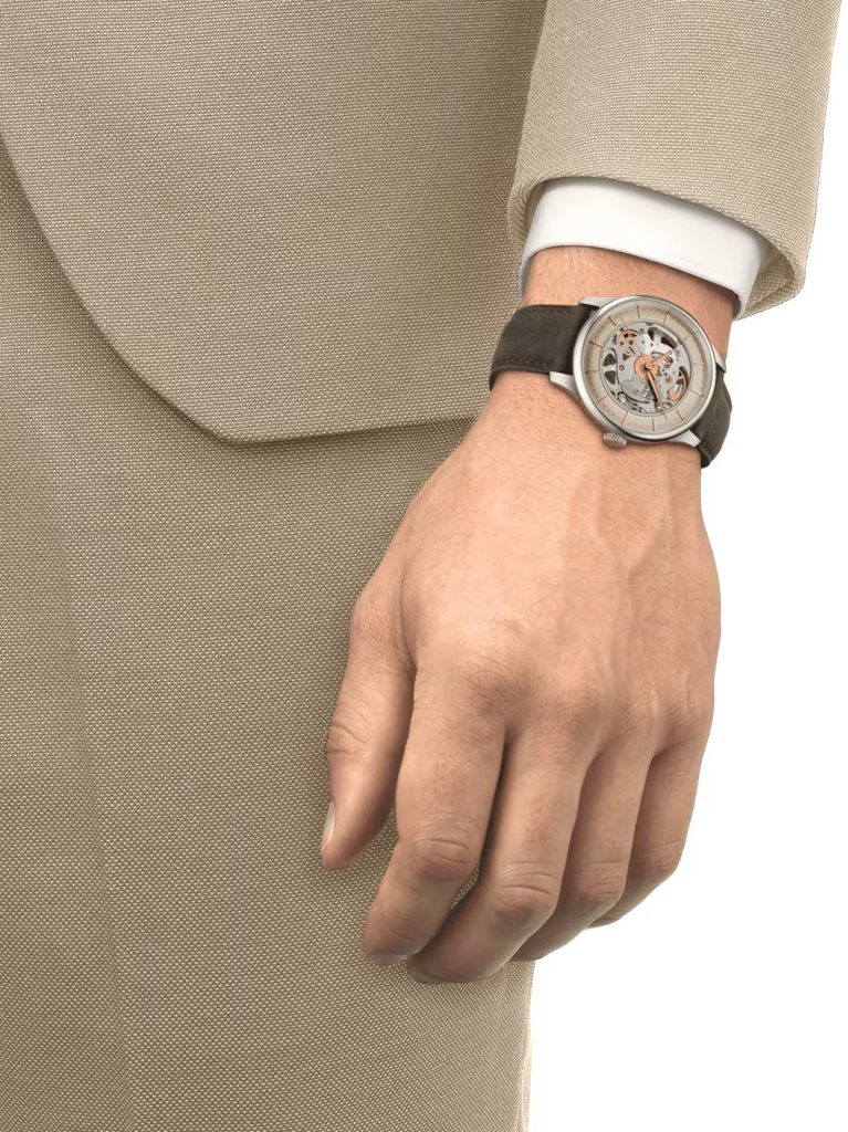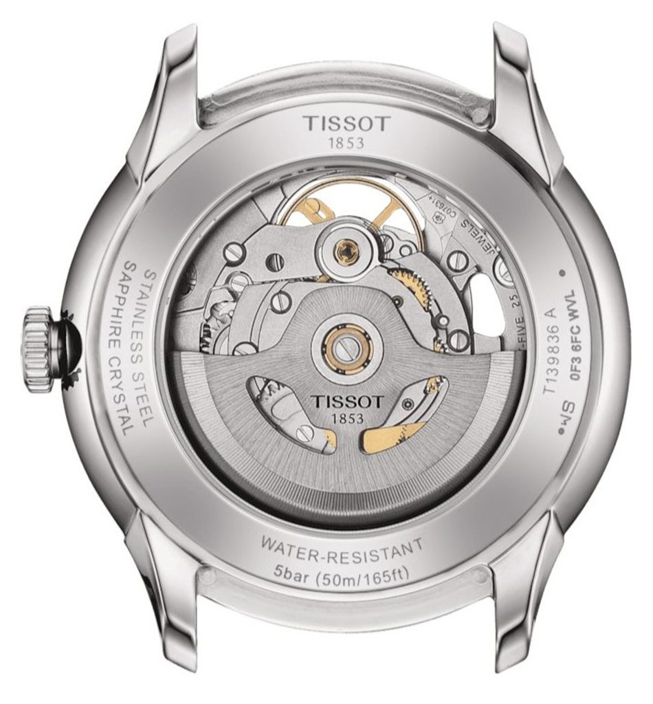 Hodinky Tissot T1398361626100 majú elegantné puzdro vyrobené z ušľachtilej ocele. Zelený remienok je vyrobený z hovädzej kože, ktorá je podšitá syntetikou. Vo vnútri hodiniek spoľahlivo pracuje švajčiarsky mechanický strojček s automatickým náťahom Powermatic 80, ktorého chod možno pozorovať cez skeletovaný ciferník a priehľadnú zadnú stranu puzdra. Jeho základom je spoľahlivý strojček ETA 2824, pracuje s frekvenciou 21 600 polofrekvencií za hodinu a má 25 kameňov. Rezerva energie náťahu je superlatívnych 80 hodín. Zotrvačník tohto strojčeka je vyrobený zo zliatiny Nivachron, ktorá je odolnejšia voči magnetickým poliam a teplotným zmenám a výsledkom je lepšia presnosť hodiniek. Strojček má funkciu "hacking" (zastavenie sekundovej ručičky počas nastavovania) a možnosť ručného naťahovania korunkou.