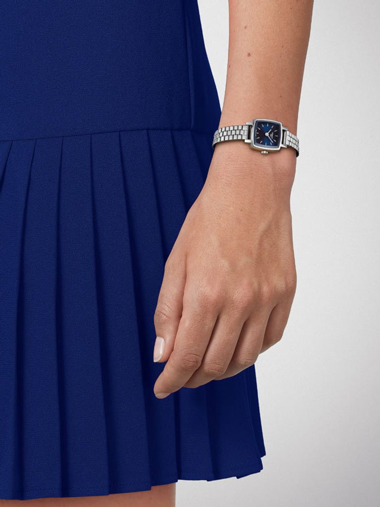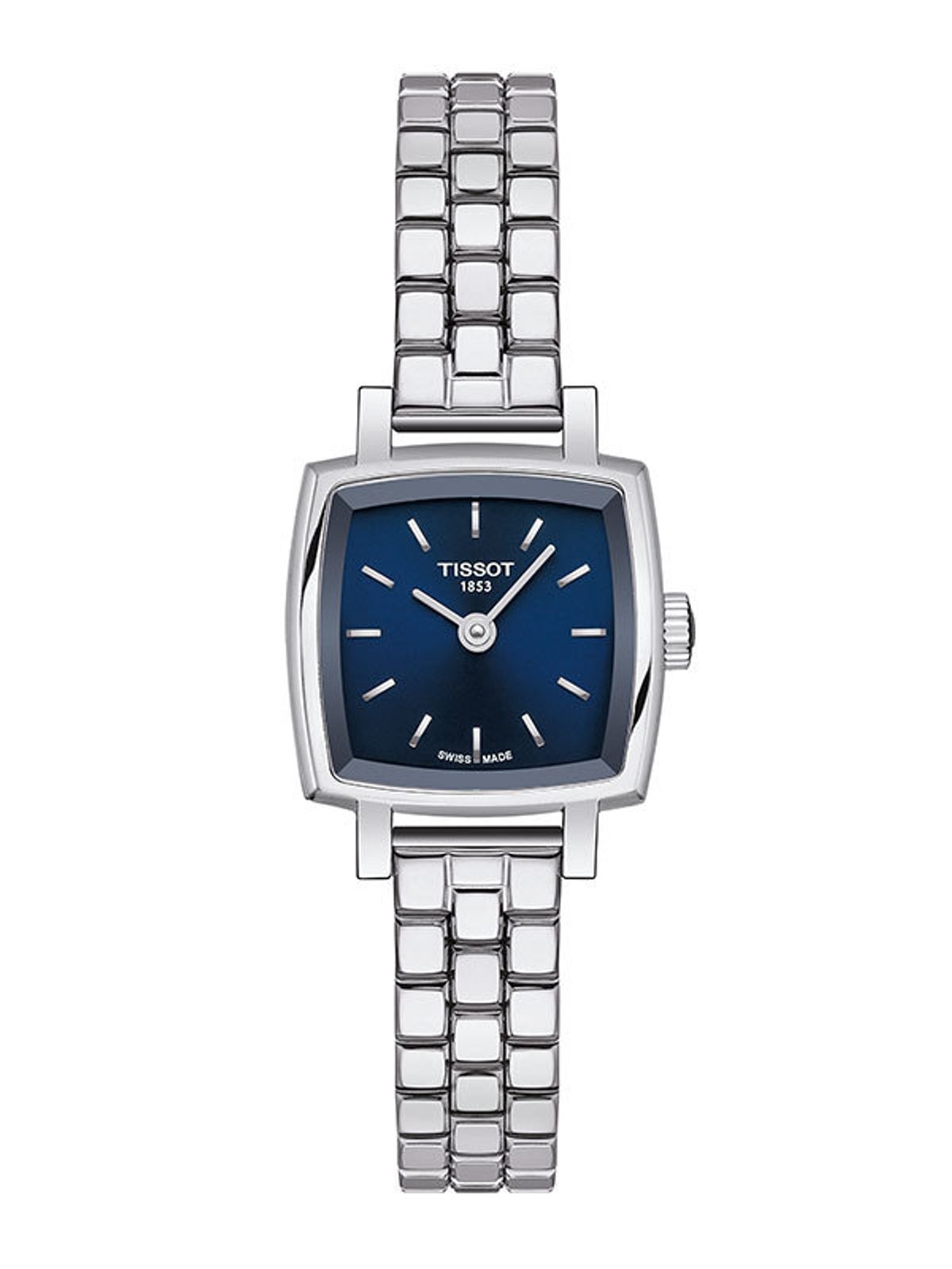 Hodinky Tissot Lovely Square T0581091104101 zaujmú svojím neobvyklým štvorcovým tvarom puzdra. Modrý ciferník je chránený zafírovým sklíčkom s vysokou odolnosťou proti poškriabaniu. V puzdre z ušľachtilej ocele sa nachádza švajčiarsky batériový strojček ETA 901.001 s tromi kameňmi. Vodotesnosť hodiniek je 30 m - sú vhodné na náhodný kontakt s vodou pri umývaní rúk a v daždi. Hodinky držia na zápästí vďaka elegantnému kovovému remienku.