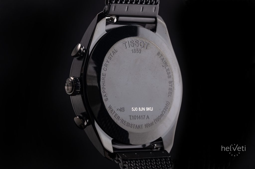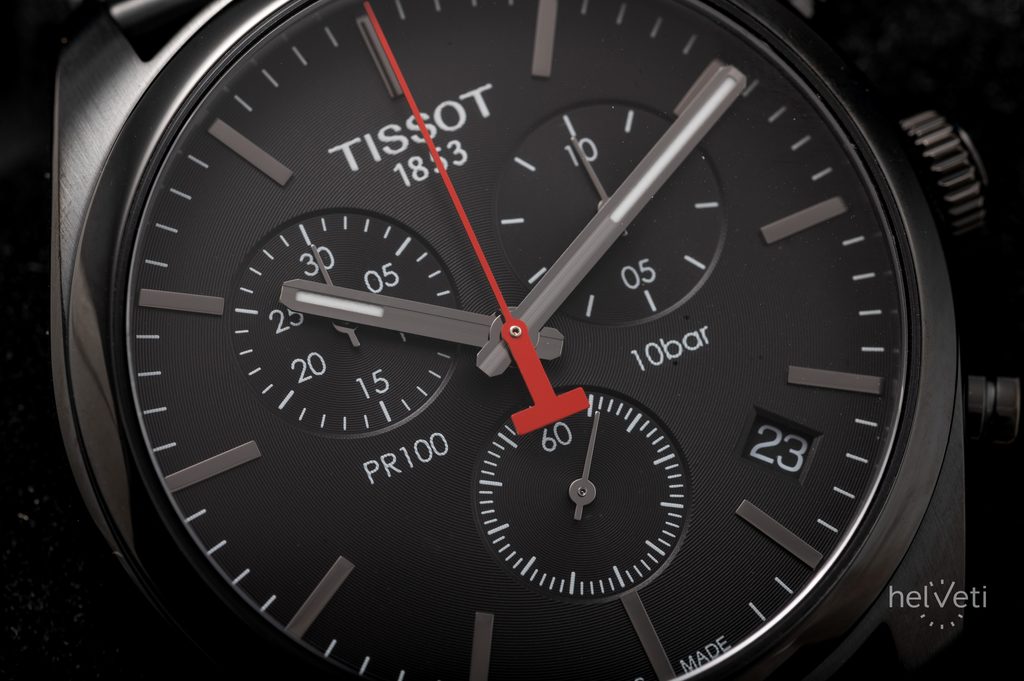 Model Tissot T1014173305100 poháňa batériový švajčiarsky strojček ETA G10.211 so 4 drahokamami. Okrem funkcie času je vybavený ukazovateľom dátumu a stopkami. Ukazovateľ dátumu sa nachádza medzi indexmi na 4. a 5. hodine. Stopky majú centrálnu sekundovú ručičku a desatinné a 30-minútové počítadlo.