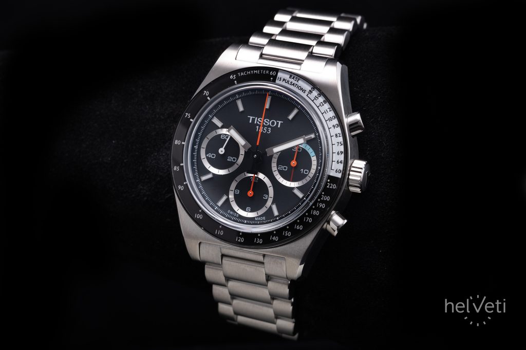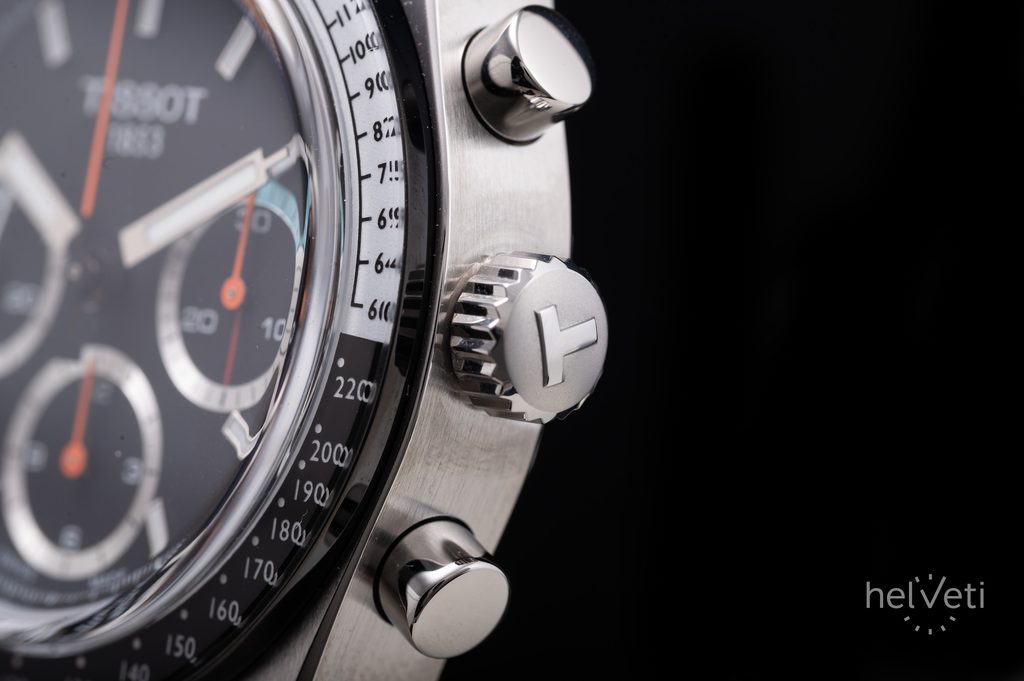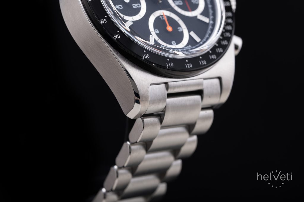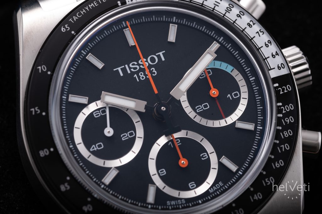 Na čiernom ciferníku nájdeme mimo stredovej sekundovej ručičky na pozícii 9 hodín. Ďalšie dva subciferníky slúžia na stopky, pričom minútový počítadlo sa nachádza na druhej hodinovej pozícii a hodinový počítadlo na šiestej hodinovej pozícii. Na lunete okolo ciferníka, ktorá je chránená minerálnym sklom, sa nachádza praktická stupnica tachymetra, ktorá slúži na odčítanie rýchlosti na kilometer. Ručičky aj indexy sú vyplnené luminiscenčnou vrstvou Super-LumiNova, ktorá zaisťuje bezproblémové odčítanie času aj za zhoršených svetelných podmienok.