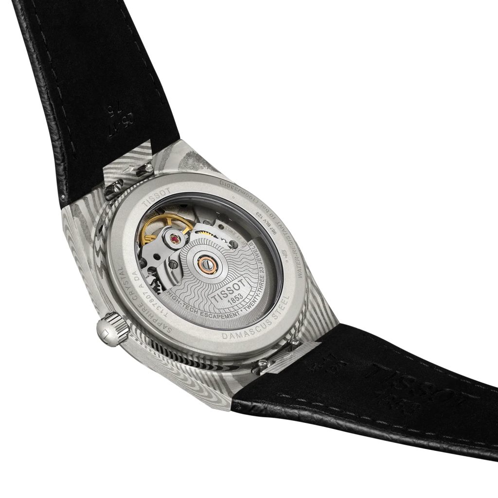 Puzdro hodiniek je vyrobené z damascénskej ocele, zadná strana puzdra je z ušľachtilej ocele. Hodinky držia na zápästí vďaka čiernemu koženému remienku s tŕňovou sponou. Jednoduchý a prehľadný ciferník s mramorovým vzorom chráni zafírové sklíčko s antireflexnou vrstvou, ktoré je vysoko odolné proti poškriabaniu. Vďaka vodotesnosti do 100 metrov (10 ATM) nie je potrebné hodinky dávať dole zo zápästia ani pri plávaní či šnorchlovaní. Budú tak skvelým partnerom nielen na každodenné nosenie, ale aj na športovanie vo vode a na súši. Priemer puzdra je univerzálnych 38 mm, takže dobre padne aj na menšie zápästia.