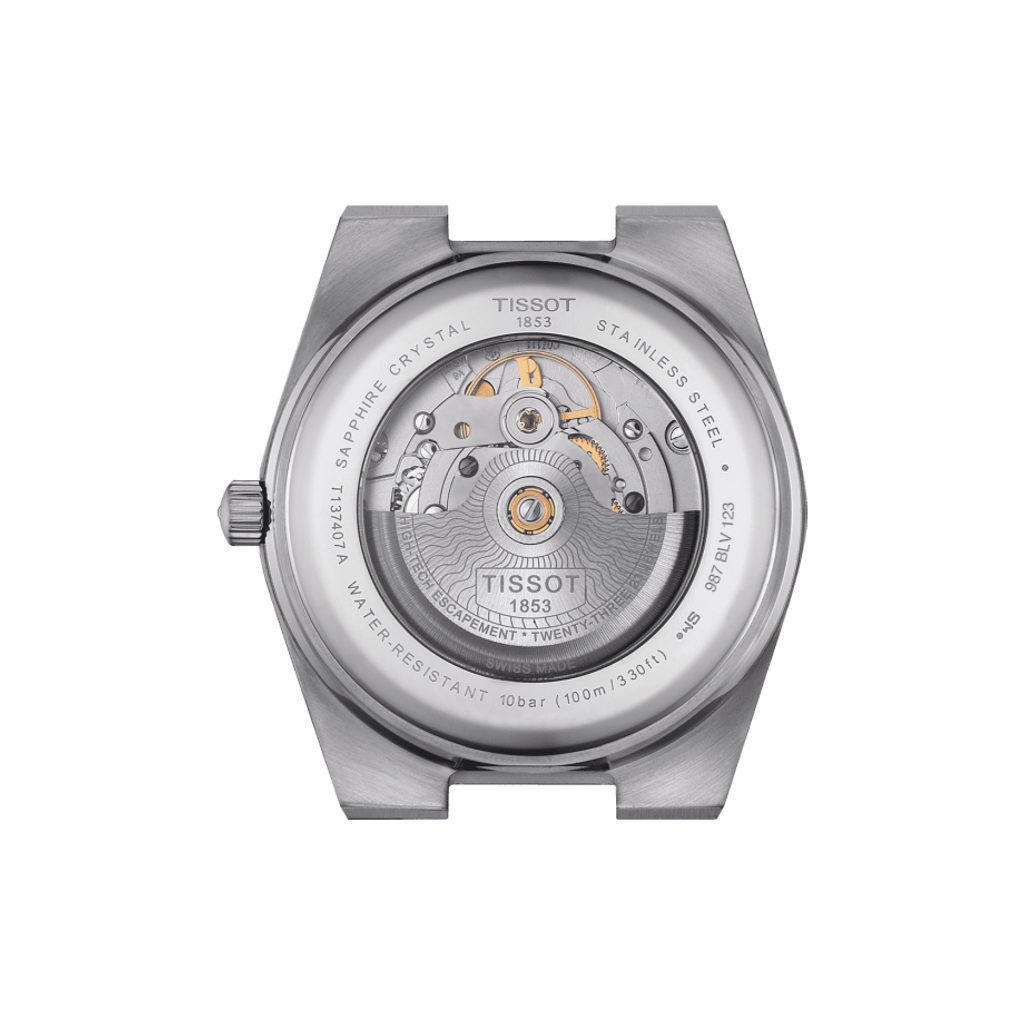 Hodinky Tissot T1374071135100 poháňa automatický strojček Powermatic 80.111, ktorý sa môže pochváliť rezervou chodu až 80 hodín, čo je dvakrát viac, ako je bežné u automatických strojčekov v tejto cenovej kategórii. Je osadený 23 drahokamami a jeho 21 600 polfrekvencií za hodinu možno pozorovať cez priehľadný ciferník. Strojček je "postavený" na základe variantu ETA 2824. Zotrvačník tohto strojčeka je vyrobený zo zliatiny Nivachron, ktorá je odolnejšia voči magnetickým poliam a teplotným zmenám a má vplyv na zvýšenie presnosti hodiniek. Okrem funkcie času je vybavený aj ukazovateľom dátumu. Ten nájdete na indexe na 3. hodine. Hodinové a minútové ručičky, ako aj indexy sú potiahnuté luminiscenčnou vrstvou na lepšie odčítanie času za šera alebo tmy.
