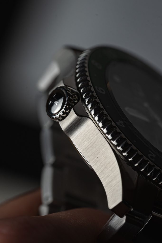 Hodinky sú vyrobené v kombinácii oceľového puzdra a oceľového náramku. Ciferník chráni zafírové sklíčko s antireflexnou vrstvou, ktoré je vysoko odolné voči poškriabaniu. Tento model sa vyznačuje typickým dizajnom potápačských hodiniek, takže samozrejmosťou je výborná čitateľnosť, luminiscencia a jednosmerne otočná potápačská luneta.