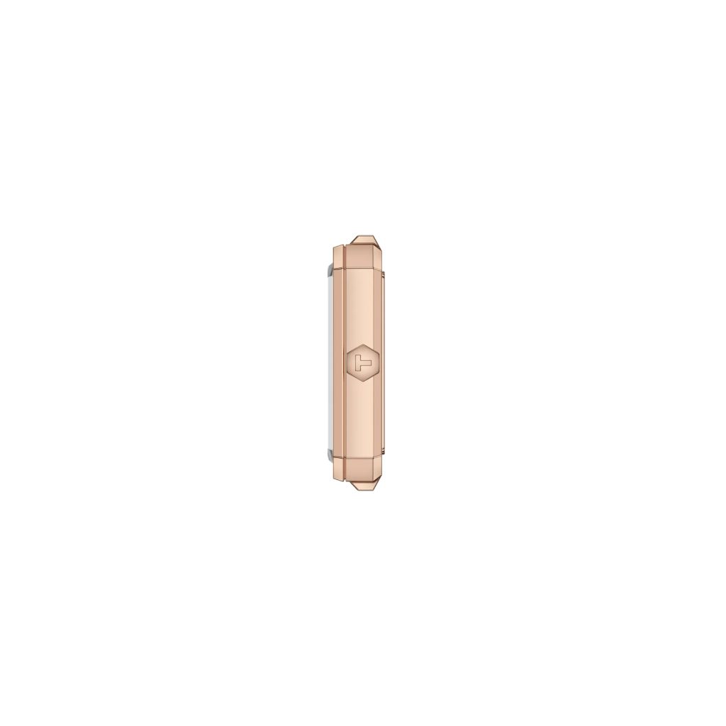 Obdĺžnikové puzdro je vyrobené z ušľachtilej ocele s PVD úpravou a je doplnené hnedým koženým remienkom s tŕňovou sponou. Charakteristickým prvkom puzdra je aj šesťuholníková korunka s logom značky. Čistý a elegantne riešený ciferník v zelenej far be so slnečným efektom chráni zafírové sklíčko, ktoré je vysoko odolné proti poškriabaniu.