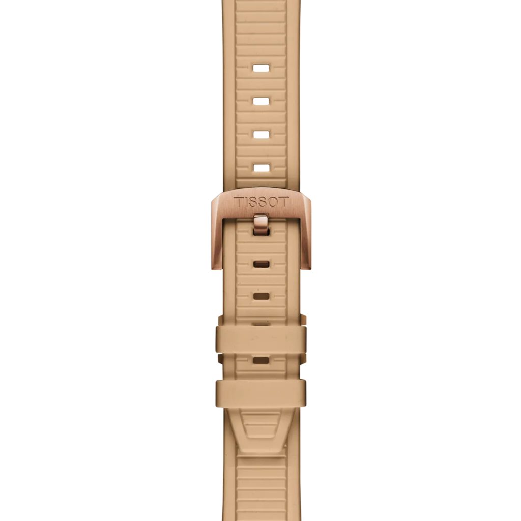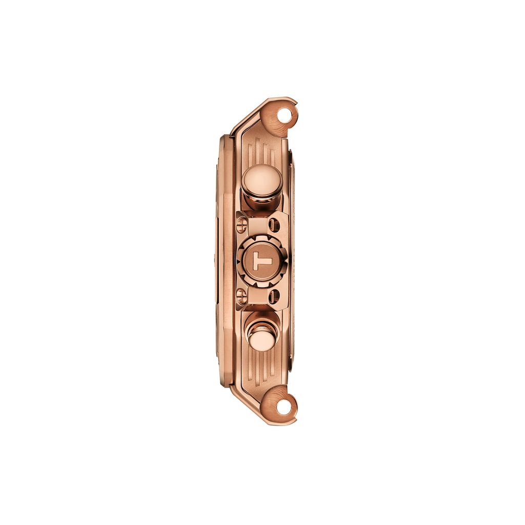 Hodinky Tissot T-Race Chronograph T1418173750100 majú puzdro vyrobené z nehrdzavejúcej ocele v ružovozlatej PVD úprave, ktoré dopĺňa silikónový remienok. V jeho vnútri spoľahlivo tiká švajčiarsky strojček ETA 251.474 Powerdrive napájaný batériou. Vďaka tejto vlastnosti môžete počítať s maximálnou dennou odchýlkou presnosti chodu +/- 0,1 sekundy. Okrem ukazovateľa dátumu, ktorý nájdete medzi štvrtým a piatym hodinovým indexom, disponuje strojček aj funkciou stopiek so schopnosťou merať až 30 minút. Funkcia indikácie slabej batérie - EOL (End of Life) - upozorní majiteľa na slabú batériu.