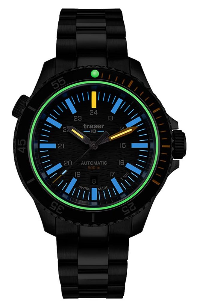 Z parametrov hodiniek ponúka model Diver Automatic aj ukazovateľ dátumu či zafírové sklíčko. Ručičky a indexy sú vybavené trubičkami s technológiou Trigalight, ktorá zaručuje čitateľnosť v tme bez akéhokoľvek osvetlenia až po dobu 15 rokov. Sekundová ručička spolu s indexom 12 dostala oranžovú farbu, ostatné sú v zelenej farbe. Ďalším zaujímavým prvkom je luminiscenčný prstenec tesne pod lunetou. Modely T100 majú vyšší obsah Trigalightu, a preto majú aj vyššiu svietivosť.