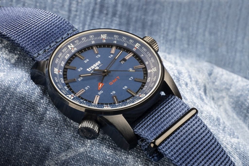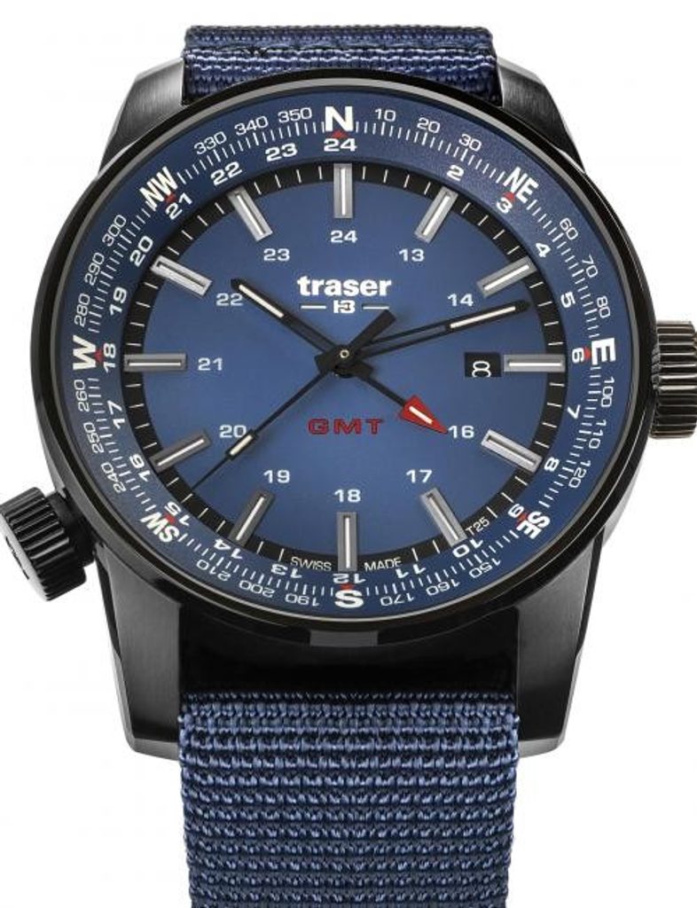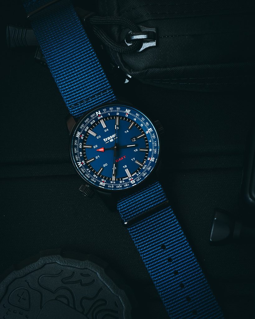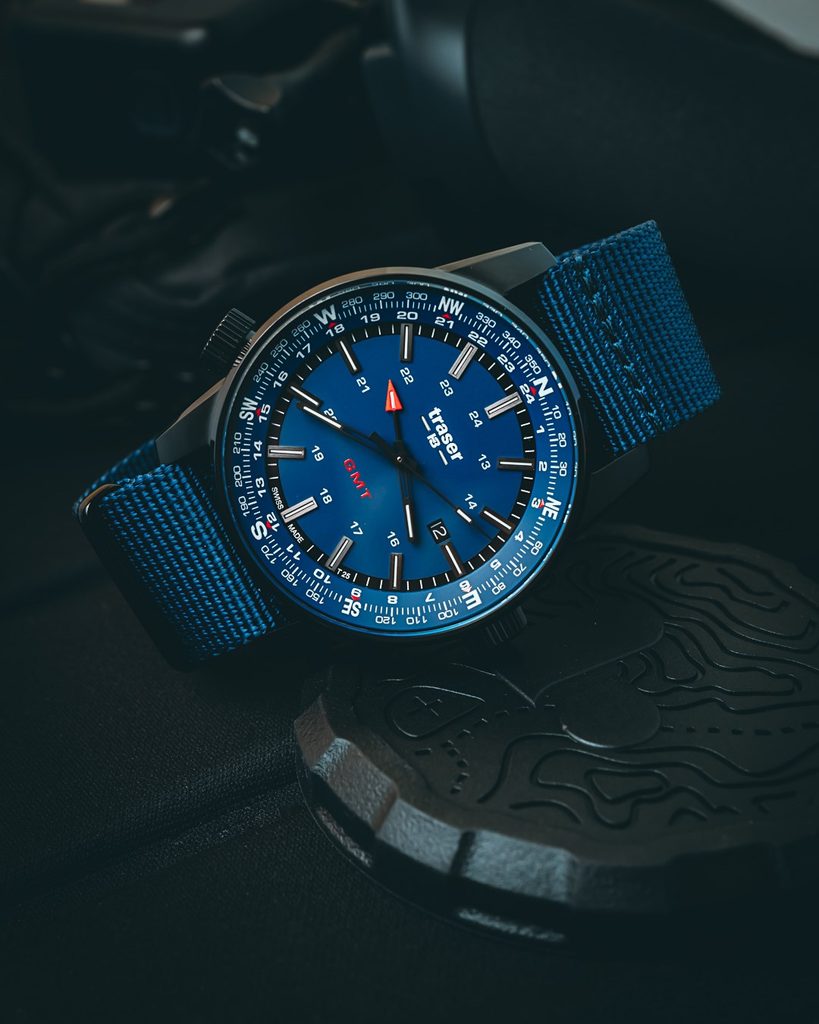 Hodinky Traser P68 Pathfinder GMT Blue s modrým ciferníkom budú skvelým partnerom na každodenné nosenie v meste, ale aj na potulky v prírode alebo na použitie vo vode.