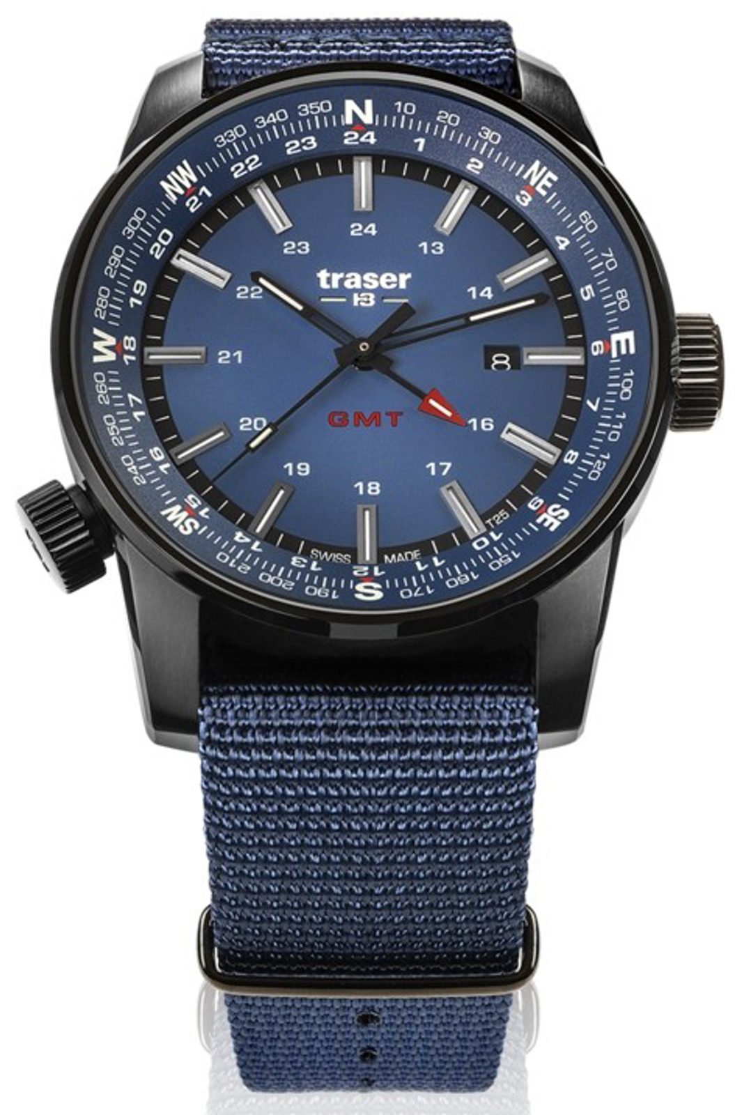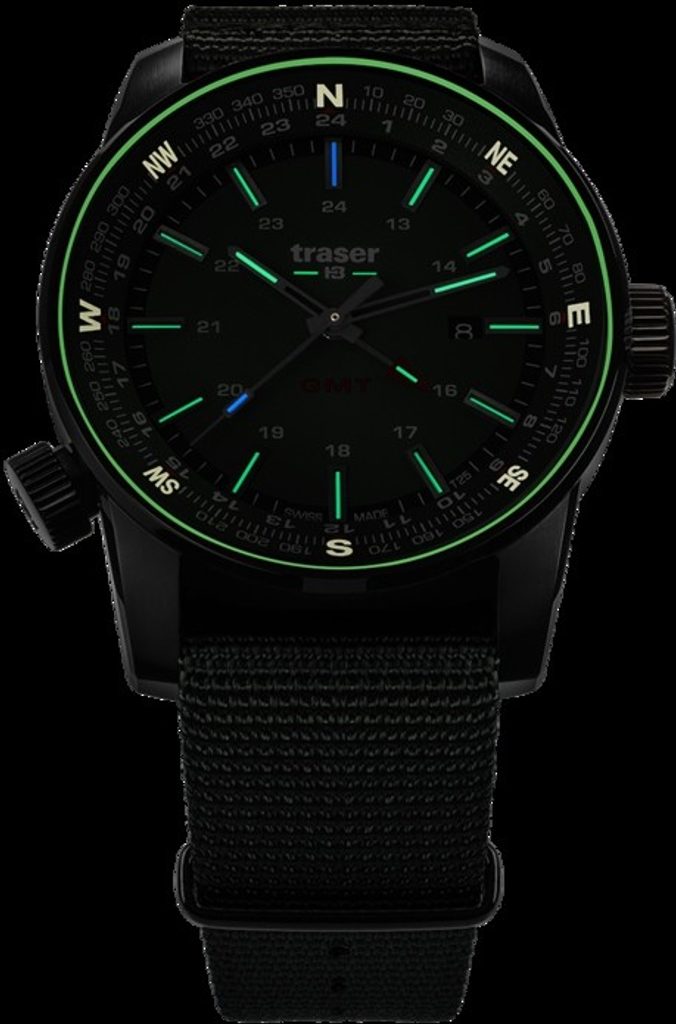 Hodinky sú osadené kvarcovým švajčiarskym strojčekom Ronda. Ten je vybavený indikátorom dátumu, ktorý sa nachádza na 3. hodine. Medzi ďalšie funkcie patrí luneta kompas, ovládaná skrutkovacou korunkou na 8. hodine, a ručička GMT na zobrazenie druhého časového pásma. Do oceľového puzdra s čiernou PVD úpravou je vsadené antireflexné zafírové sklo. To zabezpečuje nielen tradičnú odolnosť proti poškriabaniu, ale aj potrebnú čitateľnosť na jasnom slnečnom svetle. Ručičky a indexy sú vybavené trubicami Trigalight, ktoré zabezpečujú čitateľnosť v tme bez akéhokoľvek osvetlenia až po dobu 15 rokov. Ukazovatele svetových strán na lunete kompasu sú vybavené funkciou SuperLuminova. Vďaka vodotesnosti do 100 metrov môžete hodinky používať napríklad aj pri plávaní alebo šnorchlovaní. Skrutková korunka poskytuje lepšie tesnenie. Dodáva sa na tmavomodrom textilnom remienku so šírkou 24 mm.