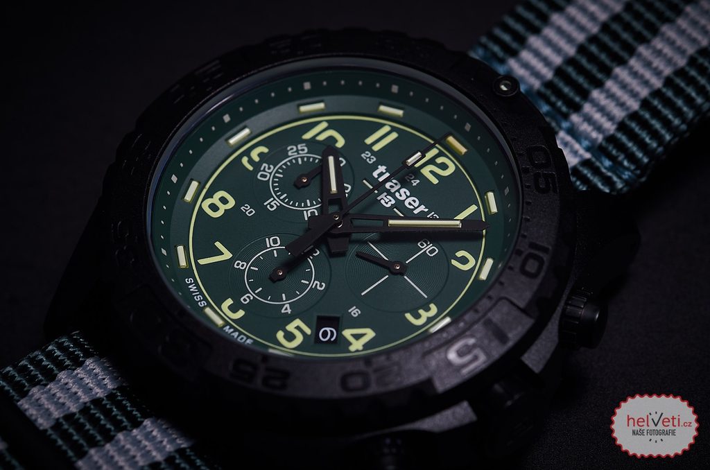 Tieto hodinky sú tiež vybavené obľúbenou luminiscenčnou technológiou trigalight, ktorá dokáže hodinky osvetľovať bez potreby svietenia minimálne 15 rokov. Tento model navyše pridáva vrstvu SuperLuminova, ktorá sa používa na osvetlenie číslic. Hodinky Traser P96 Outdoor Pioneer Evolution Chrono Green sú ideálnou voľbou pre všetkých, ktorí sa musia spoľahnúť na svoje hodinky v tmavom, vodnom alebo vlhkom prostredí.