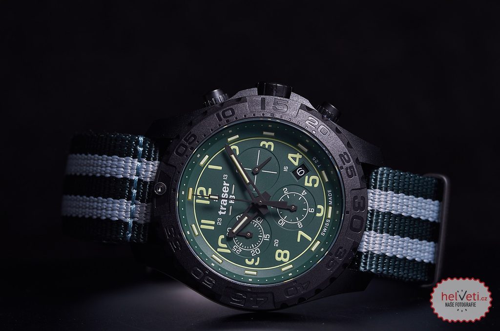Panské hodinky Traser Outdoor Pioneer Evolution Chrono Green vychádzajú z obľúbeného chronografu Traser Outdoor Pioneer Chronograph.