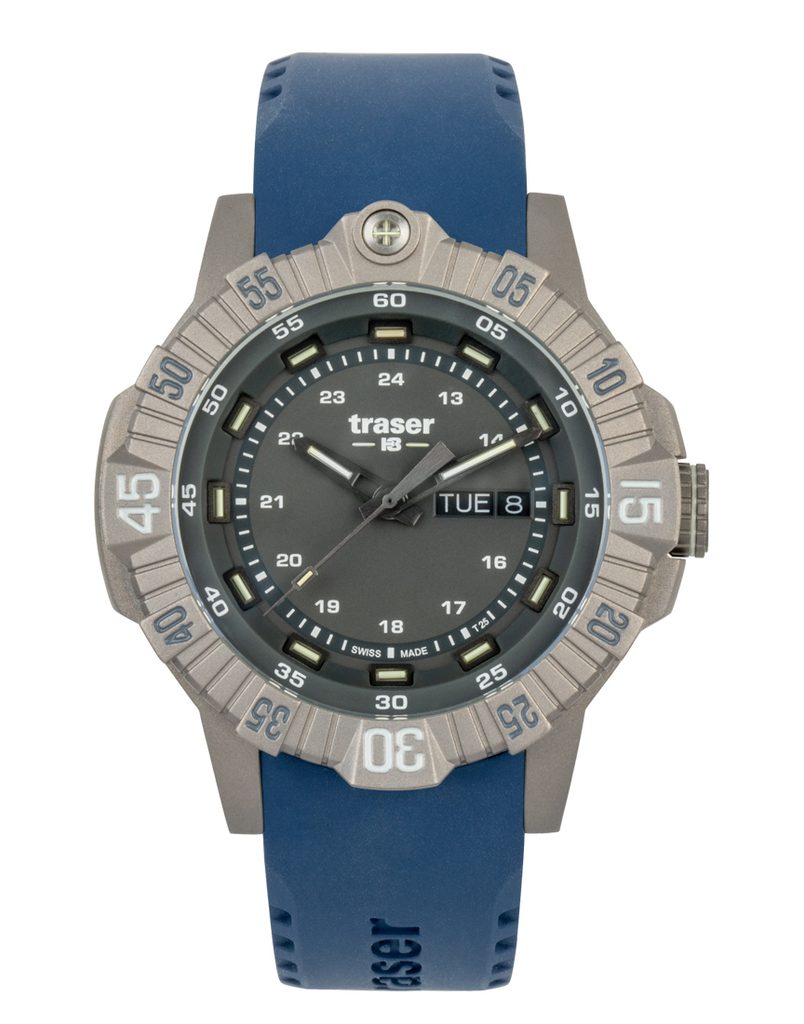 Hodinky Traser P99 T Tactical Grey Rubber sú hodinky, ktorým rozhodne nemožno uprieť vojenský vzhľad. Tento model bol predstavený v roku 2023. Bude skvelým partnerom na potulky prírodou, vojenské akcie alebo aj na použitie vo vode.