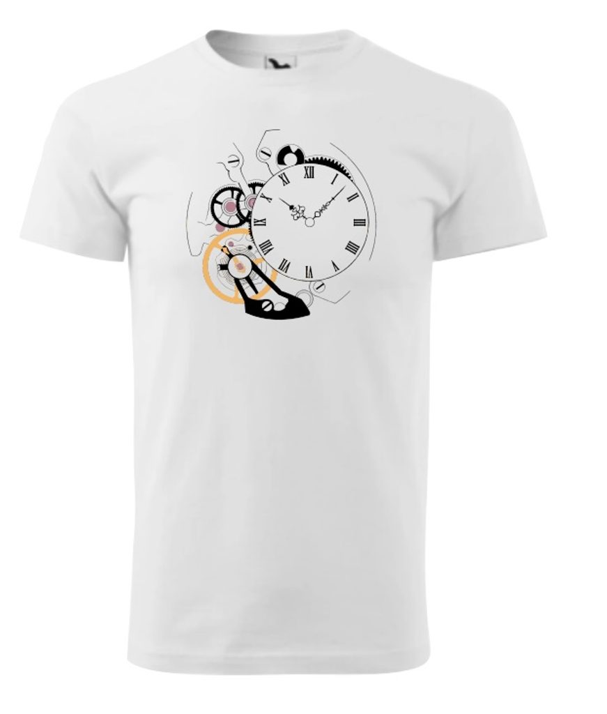 Biele tričko s motívom hodiniek Unitas. Strih košele je unisexový, takže bez obáv padne mužom aj ženám. Potlač je vyrobená digitálnou tlačou, ktorá je priedušnejšia a kvalitnejšia ako bežná tlač. Tričko je vyrobené zo 100 % bavlny.