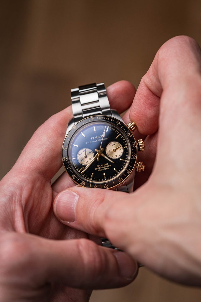 Timex je americká značka cenovo dostupných hodiniek, ktorá bola založená už v roku 1854 vo Waterbury v štáte Connecticut, kde sídli dodnes. Výrobca sa v súčasnosti sústredí na výrobu celého radu rôznych druhov hodiniek, od čisto športových digitálnych Ironman (legendárny je napríklad tento model z 90. rokov) až po formálne mechanické Marlin alebo veľmi populárny a dizajnovo mimoriadne vydarený retro rad Q Reissue, ktorý vychádza z každodenných hodiniek zo 70. až 90. rokov.