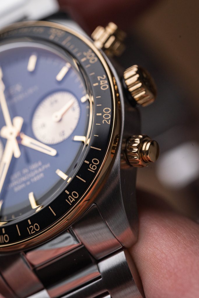 Brúsený a leštený povrch. Zapínanie na motýlie zapínanie. Analógový hodinový strojček. Chronograf s tachymetrom. Luminiscenčné ručičky. Minerálne tvrdené sklo. Vodotesnosť do 50 metrov. Materiál puzdra: nehrdzavejúca oceľ. Materiál remienka: nehrdzavejúca oceľ. Veľkosť puzdra: 39 mm. Výška puzdra: 13,5 mm. Šírka remienka: 20 mm. Dĺžka remienka: 150 - 205 mm.