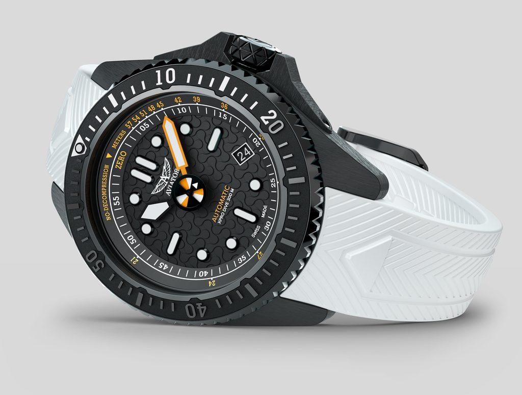 Hodinky Aviator XPRO DIVE BREATHER 300 AUTO boli navrhnuté pre tých, ktorí sa pohybujú v oblakoch a hlbokých vodách a nanovo definujú profesionálne meranie času. Tieto hodinky, určené pre potápačov aj pilotov, spájajú leteckú presnosť s odolnosťou v hlbokých vodách. Vďaka vodotesnosti do 300 metrov, kvalitnému švajčiarskemu strojčeku s automatickým naťahovaním a ľahko čitateľnému ciferníku poskytujú hodinky špičkový výkon, či už sa vznášate nad mrakmi, alebo skúmate hlbiny vôd.