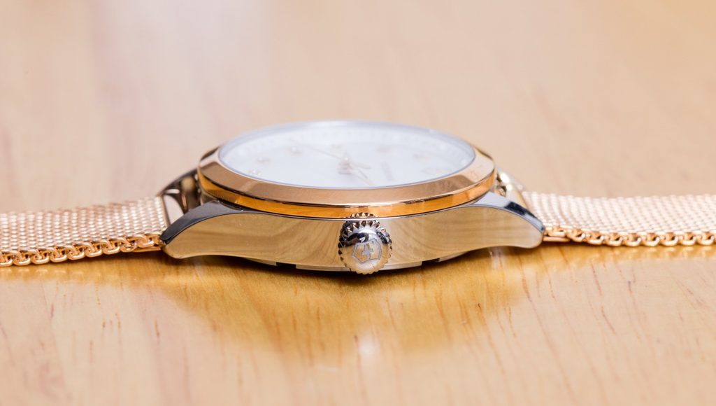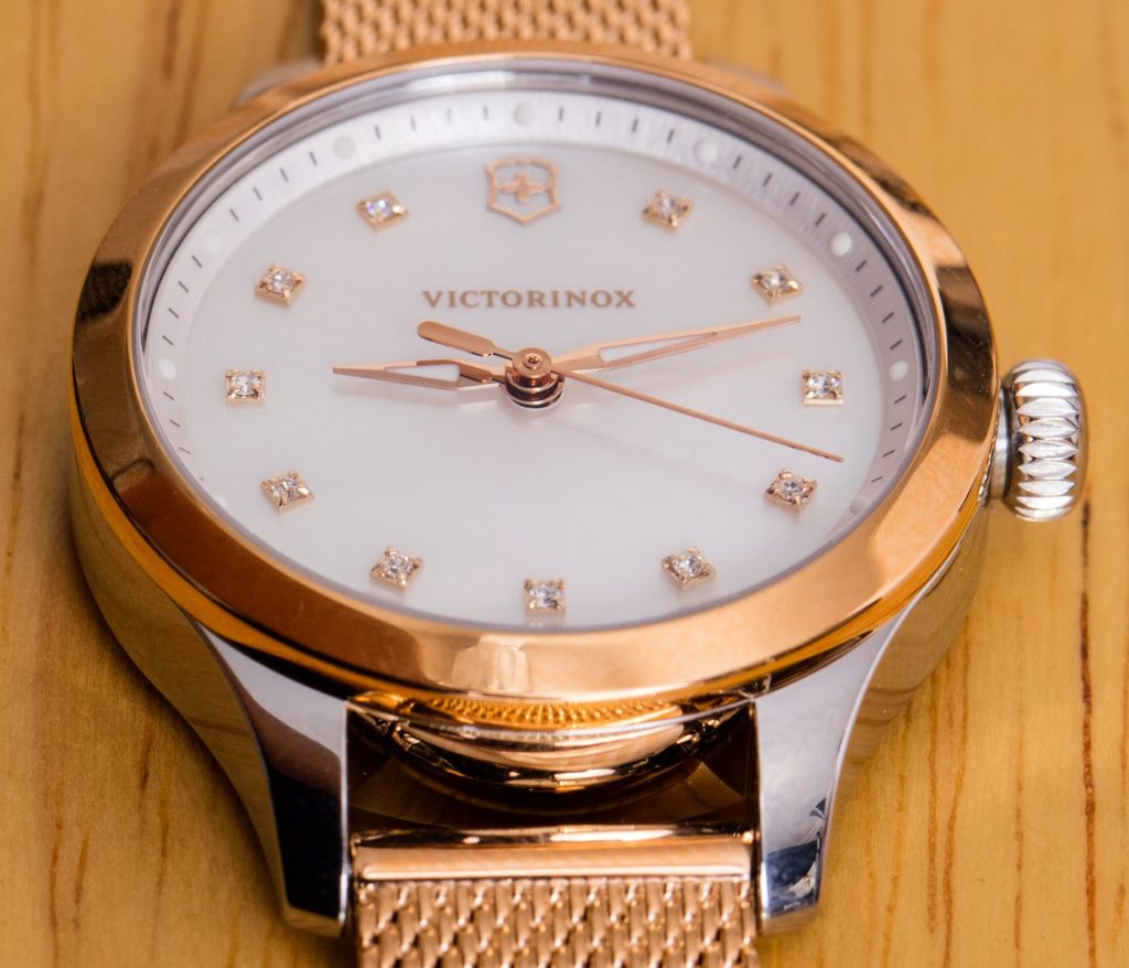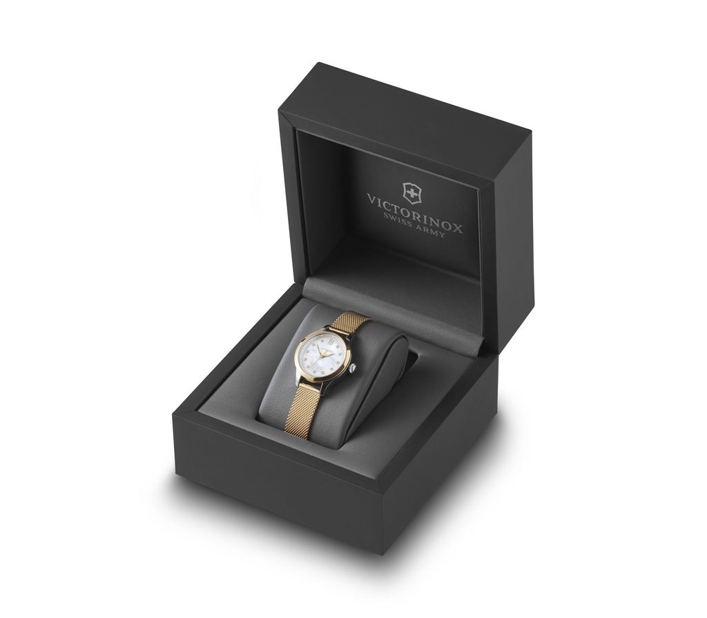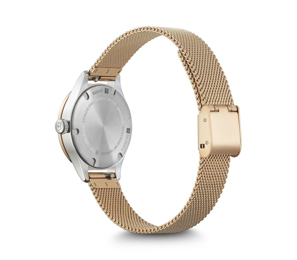 Dámske švajčiarske hodinky Victorinox z modelového radu Alliance s označením 241879 majú kvalitné oceľové puzdro a veľmi odolné zafírové antireflexné sklíčko.