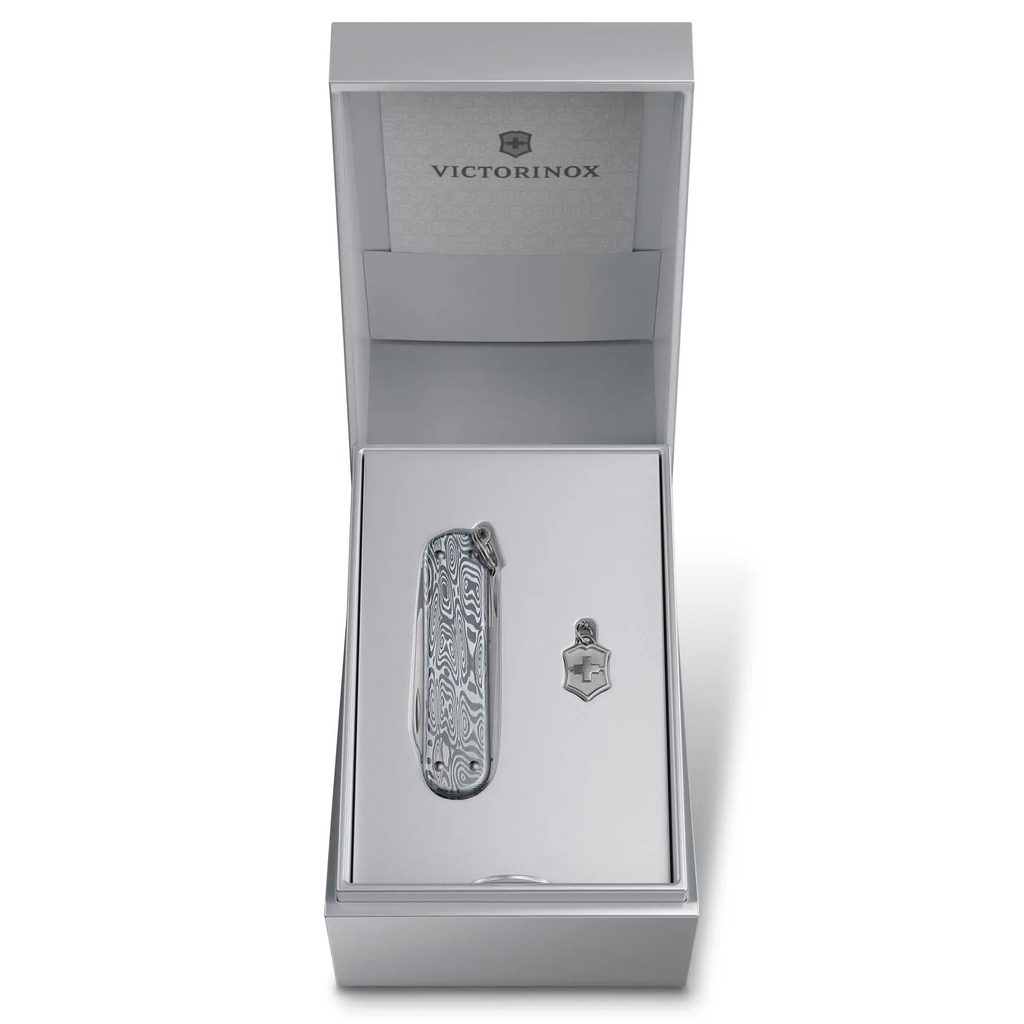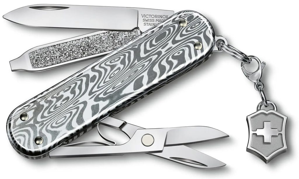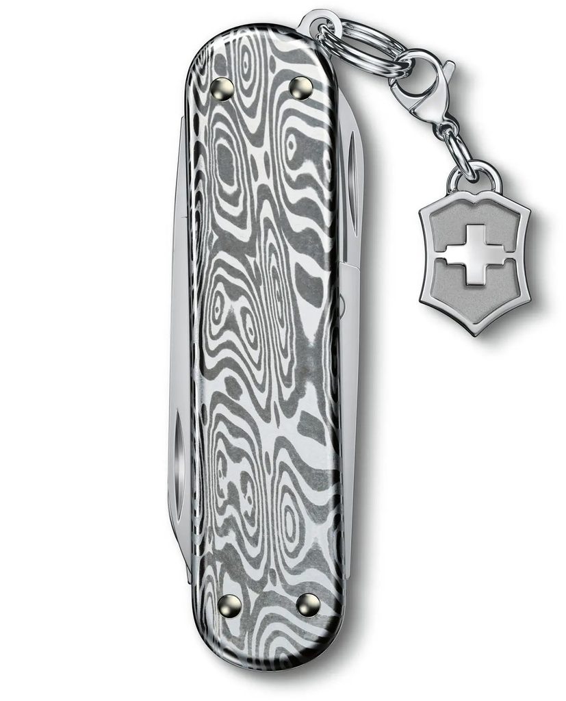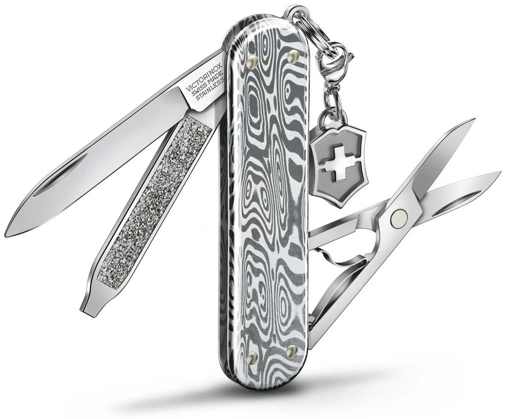 Malý vreckový nôž Victorinox, ktorý je stelesnením odolnosti, vyžaruje dokonalosť. Model Classic SD Brilliant Damast je vyrobený z 333 vrstiev mimoriadne pevného materiálu Damasteel® usporiadaných do jedinečného vzoru Odin Heim a je rovnako jedinečný a odolný ako vy. Jeho nápadný dizajn a prívesok z neho robia výnimočné multifunkčné náradie s jedinečnou eleganciou.