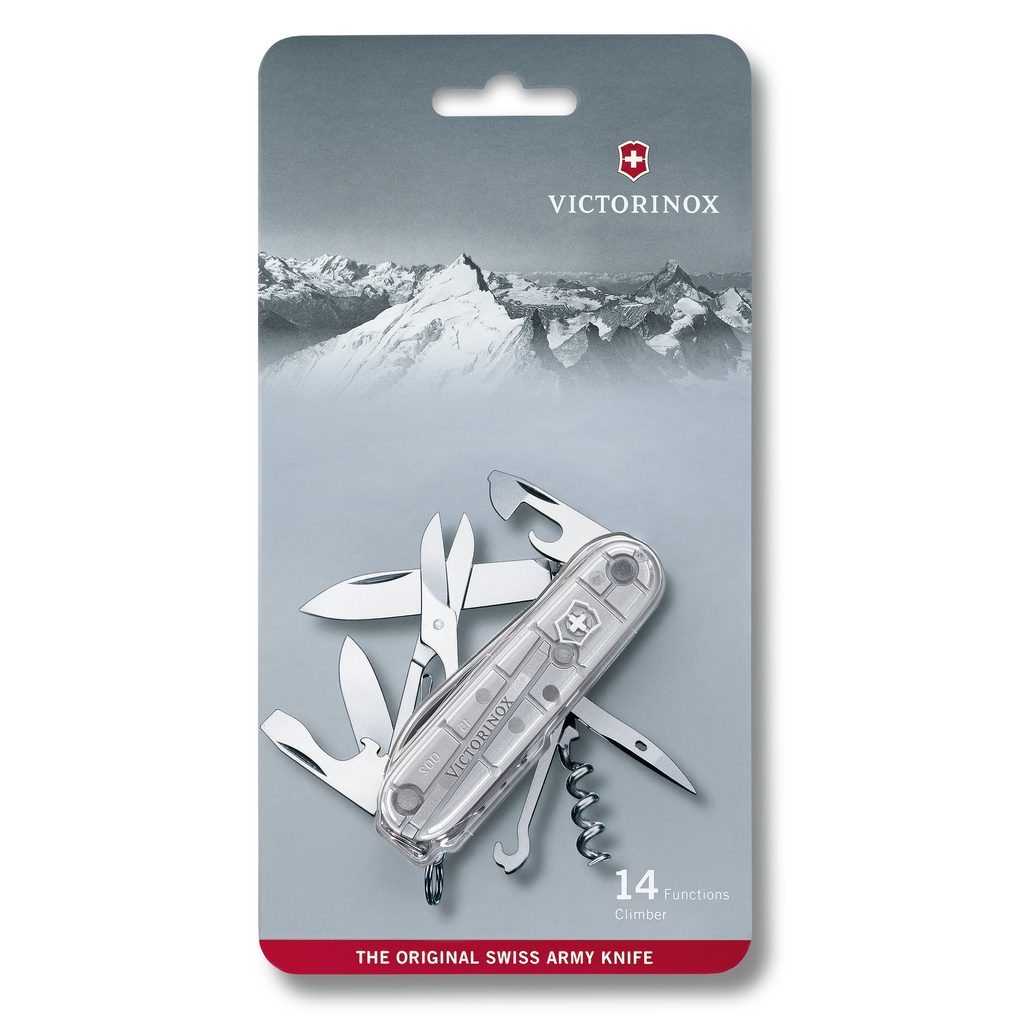 Vreckový nôž Climber s priemerom 91 mm je vybavený 14 funkčnými nástrojmi:
