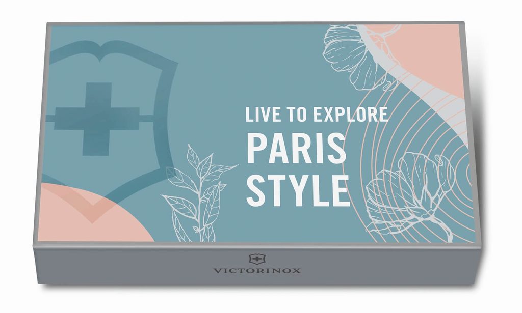Vreckový nôž Paris Style z kolekcie Live to Explore v sebe spája jemnú ženskosť a kompaktnú funkčnosť. Nôž sa dodáva so šnúrkou s karabínou a príveskom s logom s typickým švajčiarskym krížom, všetko spolu uložené v elegantnej darčekovej krabičke. Samotný nôž je vybavený 16 praktickými funkciami vrátane novej inovatívnej funkcie na jednoduché a bezpečné otváranie škatuliek: