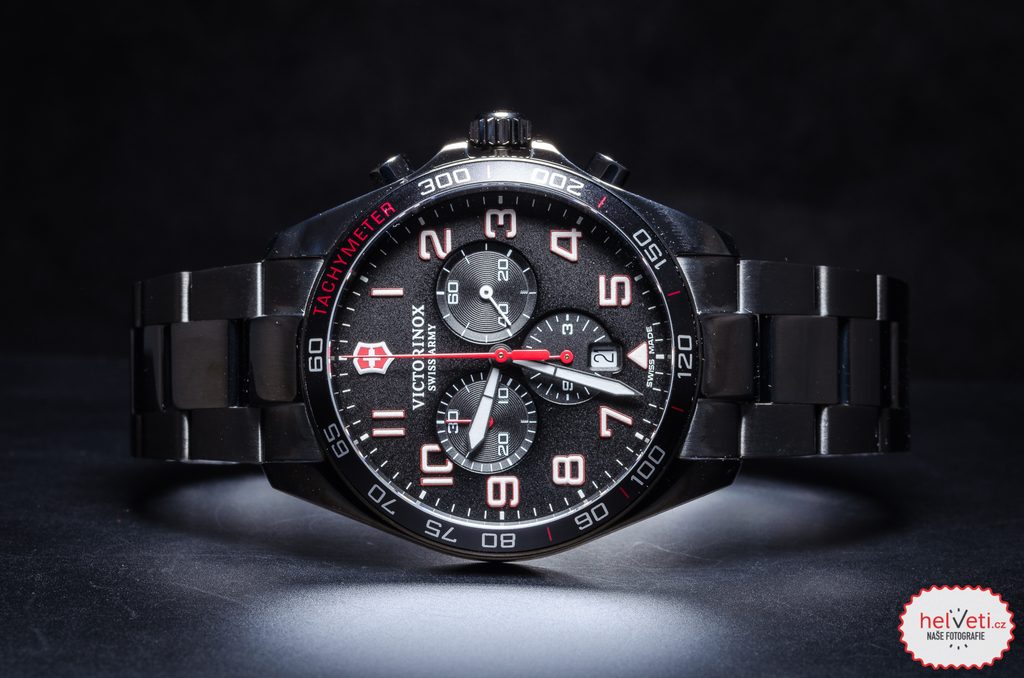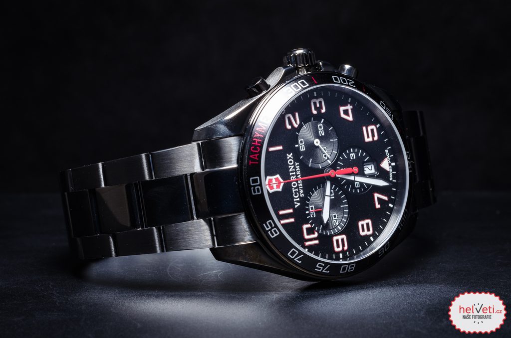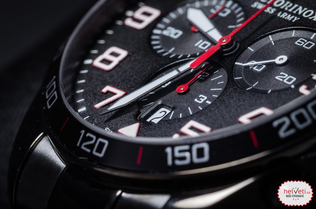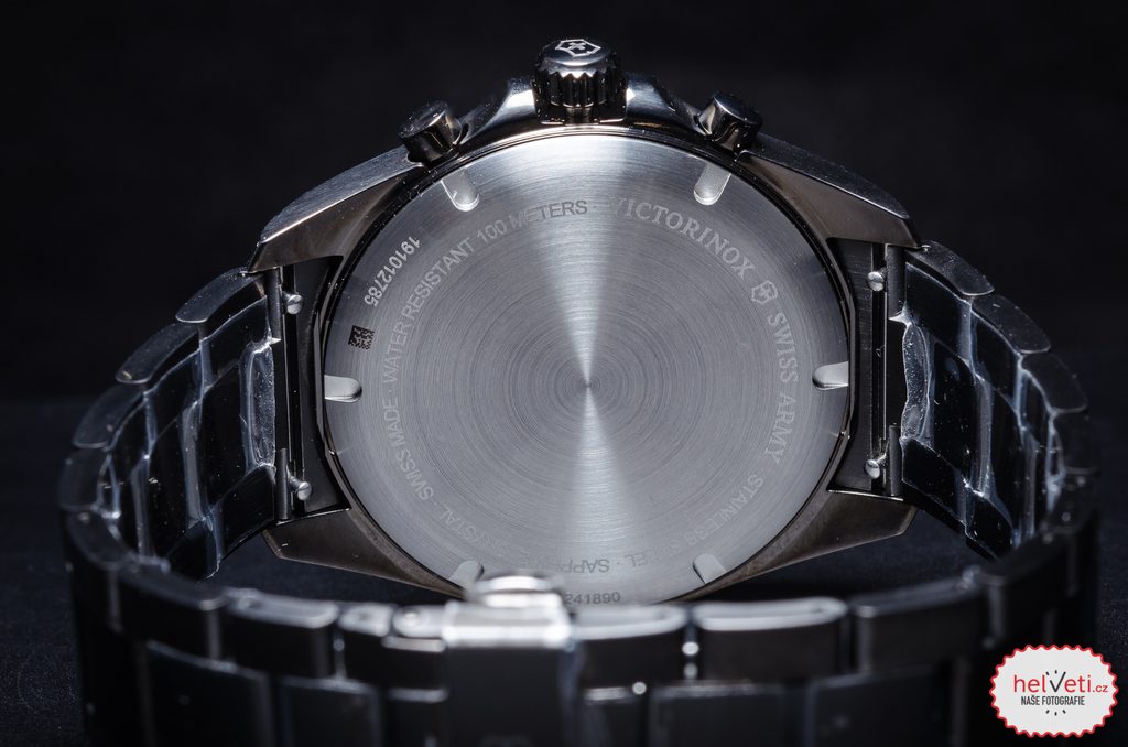 Puzdro hodiniek je vyrobené z nehrdzavejúcej ocele s čiernou PVD úpravou, na ruke drží aj vďaka kvalitnému oceľovému napínaču v PVD úprave. Korunka je chránená pred nežiaducou manipuláciou vyčnievajúcim puzdrom. Na lunete sa nachádza tachymeter. Elegantne navrhnutý ciferník chráni zafírové sklíčko s antireflexnou vrstvou, ktoré je vysoko odolné proti poškriabaniu. Hodinky sú spoľahlivo vodotesné počas plávania a potápania do hĺbky približne 10-30 metrov (vodotesnosť 100 m).