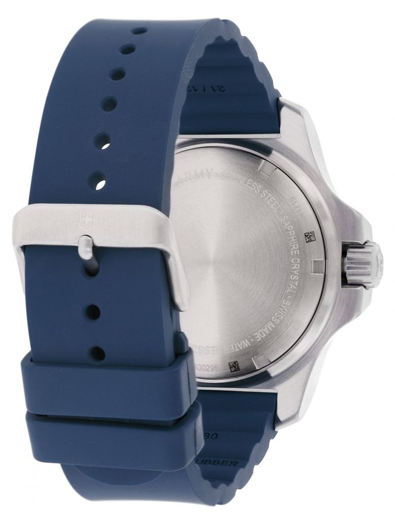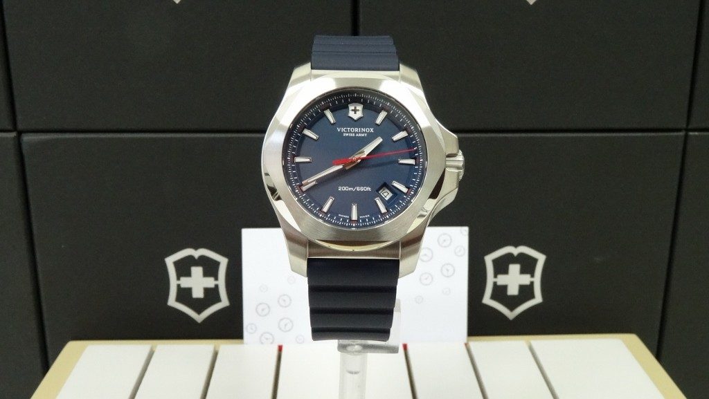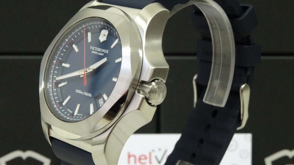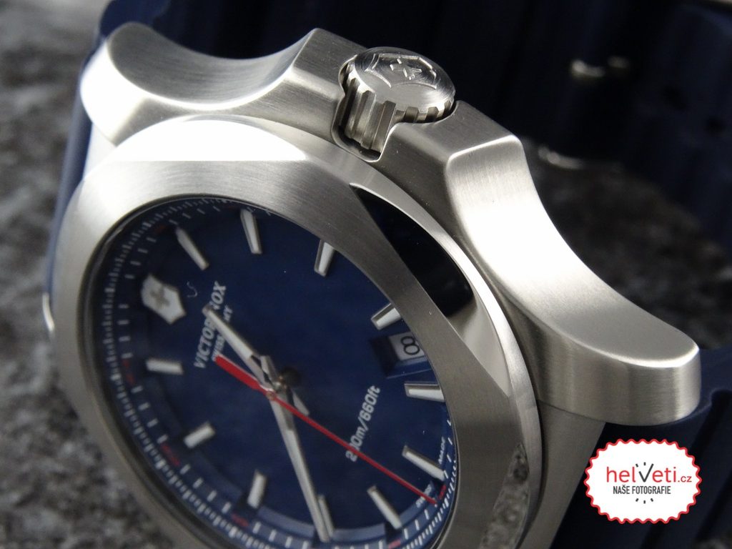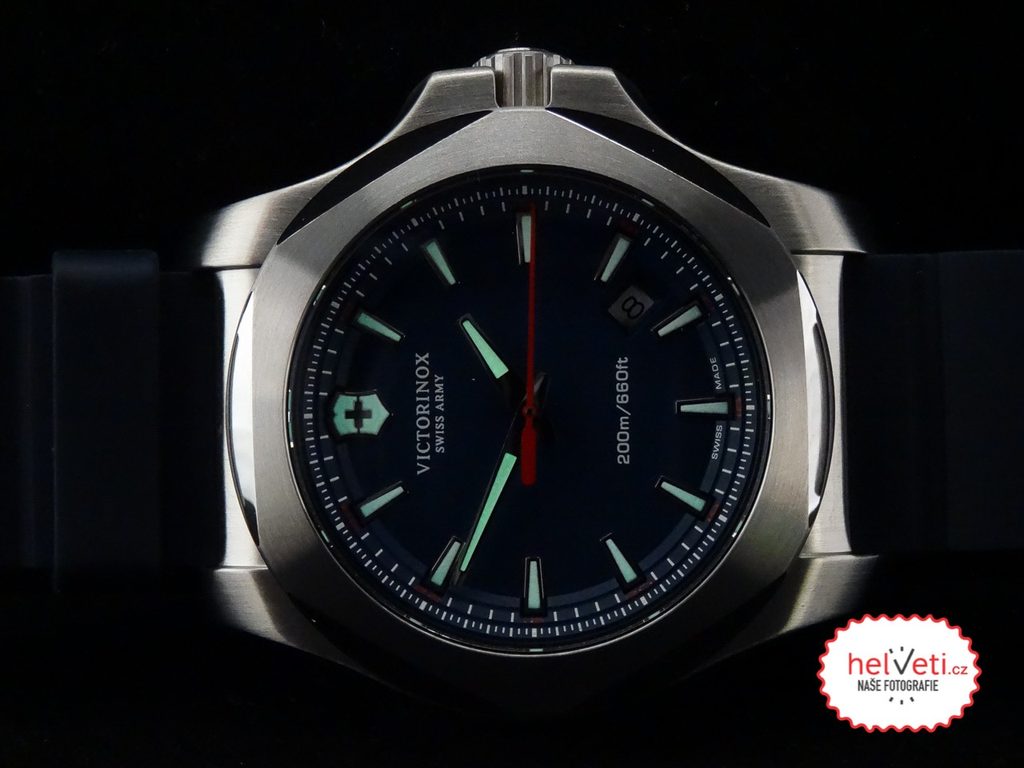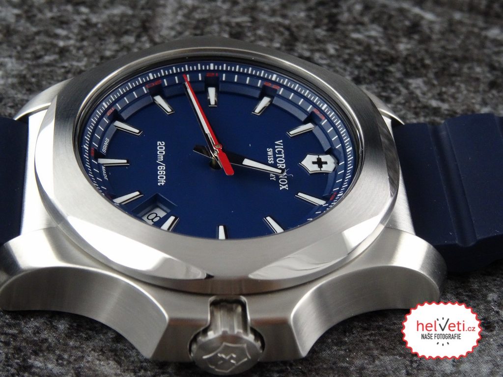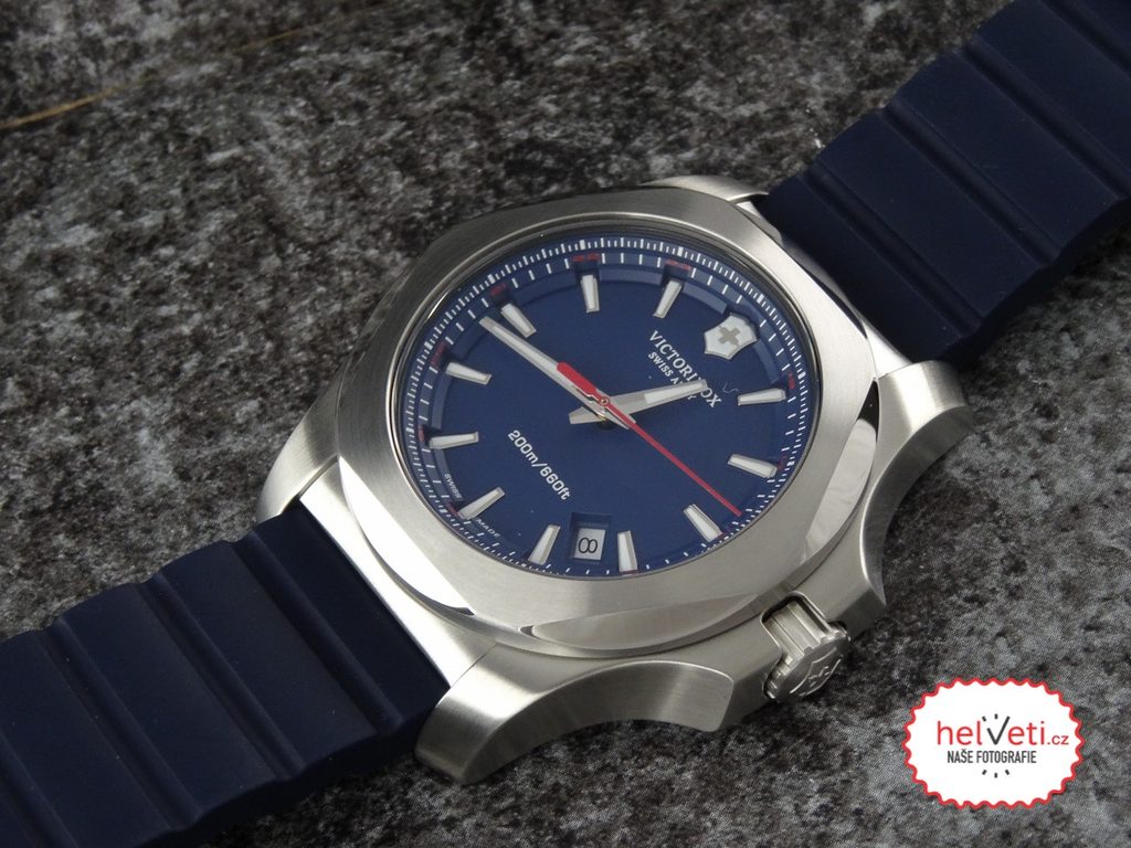 Model Victorinox I.N.O.X. patrí medzi masívne športové hodinky s veľmi minimalistickým a ľahko čitateľným ciferníkom a možno ho zakúpiť v štyroch farebných vyhotoveniach - čiernom, modrom, zelenom a červenom.