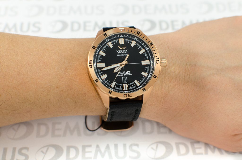 Vostok Europe Almaz Automatic Line NH35A/320B259 zo série modelov vesmírnej stanice Almaz . Program Almaz bol sériou vojenských vesmírnych staníc, ktoré Sovietsky zväz vyslal do vesmíru pod názvom Saljut. Dve kozmické lode Almaz boli úspešne obývané - Saljut 3 a Saljut 5. Program zahŕňal vývoj lodí TKS na prepravu kozmonautov a zásob na vesmírne stanice Almaz, ale nakoniec kozmonautov na stanice dopravovali lode Sojuz. Lode TKS sa testovali len v bezpilotnom režime; lety s posádkou boli zrušené.
