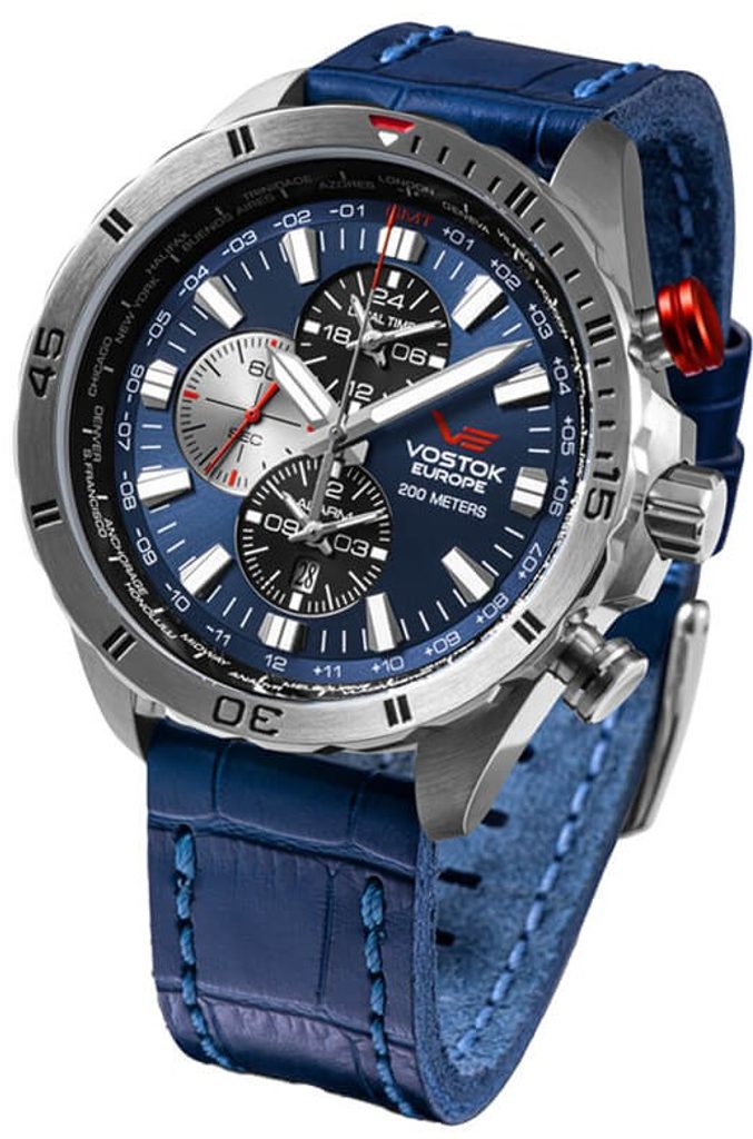 Puzdro hodiniek Vostok Europe Almaz Multifuncional Line YM26-320A652 je vyrobené z nehrdzavejúcej ocele 316L. Vnútri sa nachádza japonský batériový strojček S.Epson YM26. Na pozícii 6 je praktický ukazovateľ dátumu spolu s alarmom. Subciferník na pozícii 12 zobrazuje svetový čas v 24-hodinovom formáte. Centrálna ručička s červeným zakončením zobrazuje aktuálne mesto v druhom časovom pásme. Sekundovú ručičku mimo stredu nájdete na pozícii 9.