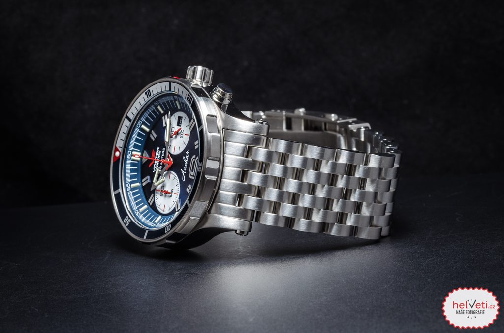 Puzdro hodiniek Anchar Submarine Chrono Line 6S21-510A583B je vyrobené z nehrdzavejúcej ocele. Vnútri sa nachádzajaponský batériový strojček Miyota 6S21. Na tradičnej pozícii 3 nájdeme praktický ukazovateľ dátumu. Hodinky sú vybavené aj funkciou stopiek a jednosmerne otočnou lunetou s funkciou tichého časovača.