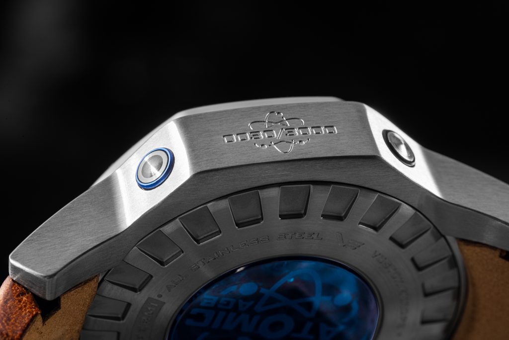 Vodotesnosť hodiniek Atomic Age Fermi Line NH34-640A701 je stanovená na 20 ATM a podporuje ju skrutkovacia korunka a héliový ventil. Okrem koženého remienka je súčasťou balenia aj silikónový remienok.