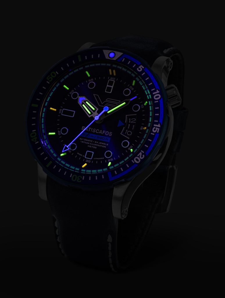 Celkovo 16 tríciových kapsúl (13 na indexoch, 2 na hodinovej ručičke, 1 na minútovej ručičke) zaisťuje dokonalú čitateľnosť aj za zhoršených svetelných podmienok. Sekundová ručička a konce minútovej a hodinovej ručičky sú potiahnuté luminiscenčnou vrstvou Superluminova, ktorá pri osvetlení svieti modrou farbou. Superluminova sa nachádza aj na lunete a na vnútornom obvode ciferníka.