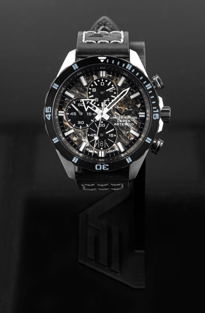 Puzdro hodiniek Vostok Europe Celestial Objects Ceres Asteroid 6S10-320E693je vyrobené z ušľachtilej ocele s čiernou otočnou lunetou. Vnútri sa nachádza japonský batériový strojček Miyota 6S10. Na pozícii 6 sa nachádza praktická dátumovka a mimo stredu umiestnená sekundová ručička. Hodinky sú vybavené aj funkciou stopiek s počítadlom minút na pozícii 9.