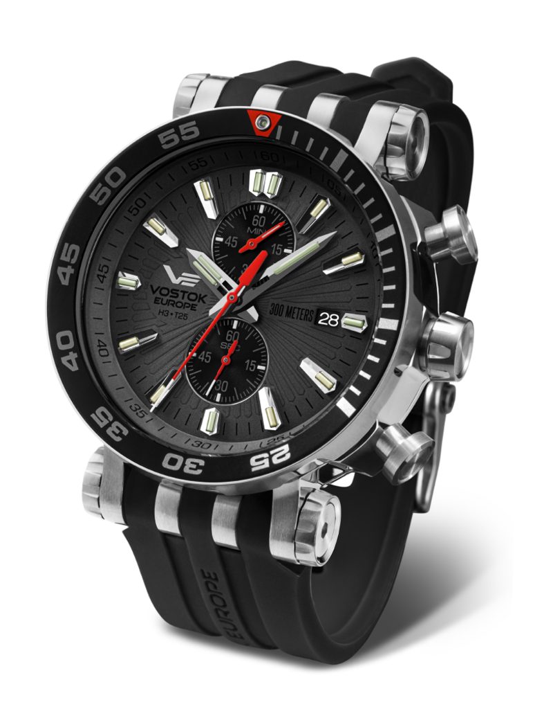 Puzdro hodiniek Vostok Europe Energia Rocket Chrono Line VK61/575A588Bjevyrobené z nehrdzavejúcej ocele 316L. Vnútri sa nachádza japonský batériový strojček Seiko VK61. Na tradičnej pozícii 3 sa nachádza praktický ukazovateľ dátumu. Pozíciu 6 zaberá mimostredová sekundová ručička. Hodinky sú vybavené aj funkciou stopiek, pričom subciferník na pozícii 12 slúži ako počítadlo minút. Luneta hodiniek je jednosmerne otočná a nechýba ani héliový ventil.