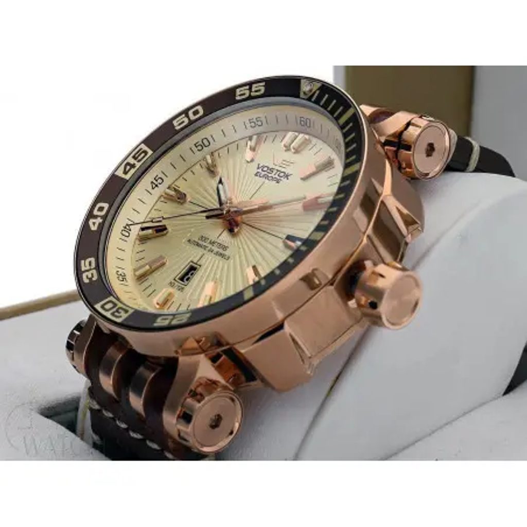Puzdro Vostok Europe Energia Rocket Stainless Steel Line NH35/575B281 je vyrobené z nehrdzavejúcej ocele s povrchovou úpravou ružovým zlatom PVD. Vo vnútri sa nachádza japonský mechanický strojček Seiko NH35 s automatickým naťahovaním. Má aj možnosť manuálneho naťahovania a rezervu chodu 41 hodín. Prácu strojčeka si môžete naplno vychutnať vďaka priehľadnému ciferníku. Na pozícii 6 nájdeme praktický ukazovateľ dátumu. Hodinky sú vybavené aj jednosmerne rotujúcou lunetou a héliovým ventilom.