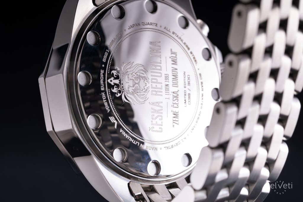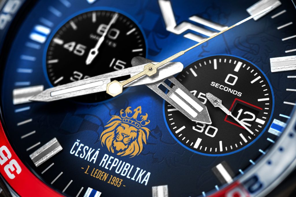 Oceľovému puzdru dominuje otočná luneta, ktorá je vo farbách českej trikolóry. Veľmi pôsobivá je aj zadná strana hodiniek. Nájdeme tu špeciálnu rytinu v podobe českého leva s korunkou, nápisy"Česká republika 1. 1. 1993" a časť textu našej hymny"Země Česká, domov můj".