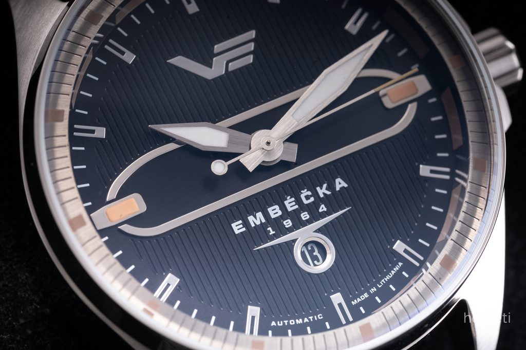 Celý retro dizajn hodiniek vás prenesie do zlatej éry motorizmu. S priemerom puzdra 46 mm poteší edícia Embéčka najmä priaznivcov väčších hodiniek. Vodotesnosť je stanovená na 200 ATM, takže hodinky vydržia aj väčší kontakt s vodou, napríklad pri plávaní alebo potápaní. Tento farebný variant bol vyrobený v limitovanej edícii 1000 kusov.