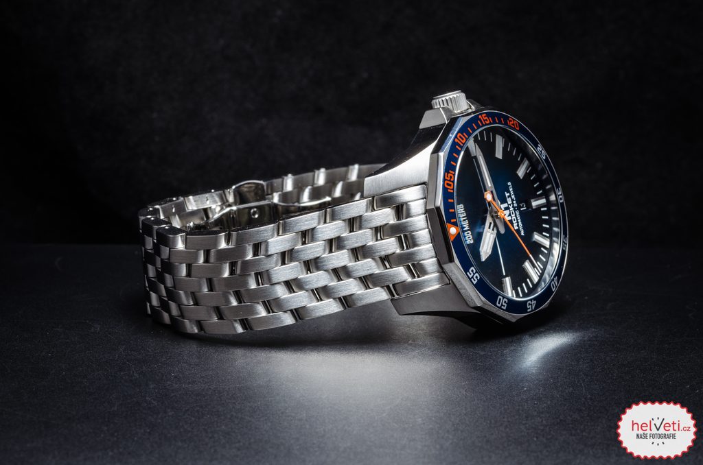 Ciferník je chránený minerálnym tvrdeným sklíčkom K1 s antireflexnou úpravou. Ručičky a indexy sú potiahnuté luminiscenčnou vrstvou Superluminova. Priemer puzdra 46 mm z neho robí ideálnu voľbu pre priaznivcov väčších hodiniek.