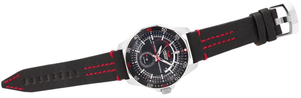 Puzdro hodiniek Vostok Europe N-1 Rocket Automatic Power Reserve NE57-225A563 je vyrobené z nehrdzavejúcej ocele 316L. Vnútri sa nachádza japonský mechanický strojček Seiko NE57 s automatickým naťahovaním a možnosťou manuálneho naťahovania. Na pozícii 6 nájdeme praktický ukazovateľ dátumu. Strojček má 29 drahokamov a rezervu chodu 41 hodín. Na pozícii 6 sa nachádza subciferník s ukazovateľom dátumu. Vďaka priehľadnému strojčeku môžete pozorovať jeho činnosť. Luneta hodiniek je jednosmerne otočná.