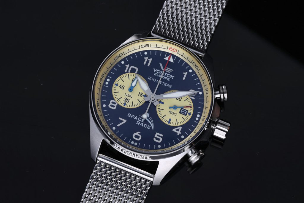 Pánske hodinky Vostok Europe Space Race Chrono Line 6S21-325A667B patria do modelového radu Space Race. ZSSR a USA súperili o prvenstvo v kozmických letoch. Začal sa vypustením umelej družice v roku 1957, pokračoval robotickými vesmírnymi sondami na Mesiac, Venušu a Mars a vyvrcholil vyslaním ľudí na obežnú dráhu Zeme a nakoniec na Mesiac. Vesmírna misiaApollo-Sojuz v roku 1975 bola symbolom spolupráce medzi oboma stranami a ukončením vesmírnych pretekov.