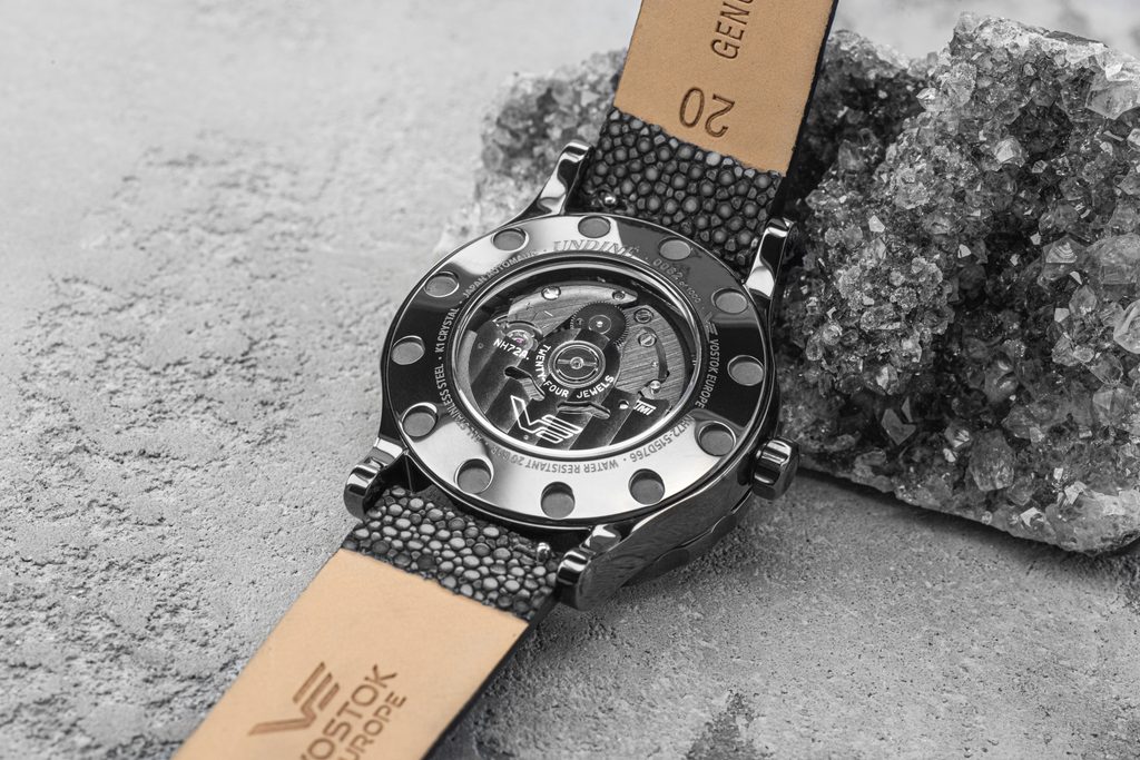 Puzdro hodiniek Vostok Europe Undine Rebel NH72-515D766 je vyrobené z ušľachtilej ocele s čiernou PVD úpravou. Hodinky poháňa japonský automatický skeletonový strojček NH72 s rotorom zdobeným Côtes de Genève. Zaručuje presné meranie času a výnimočný štýl, pričom minimalizuje potrebu častej údržby. Rezerva chodu je približne 41 hodín.