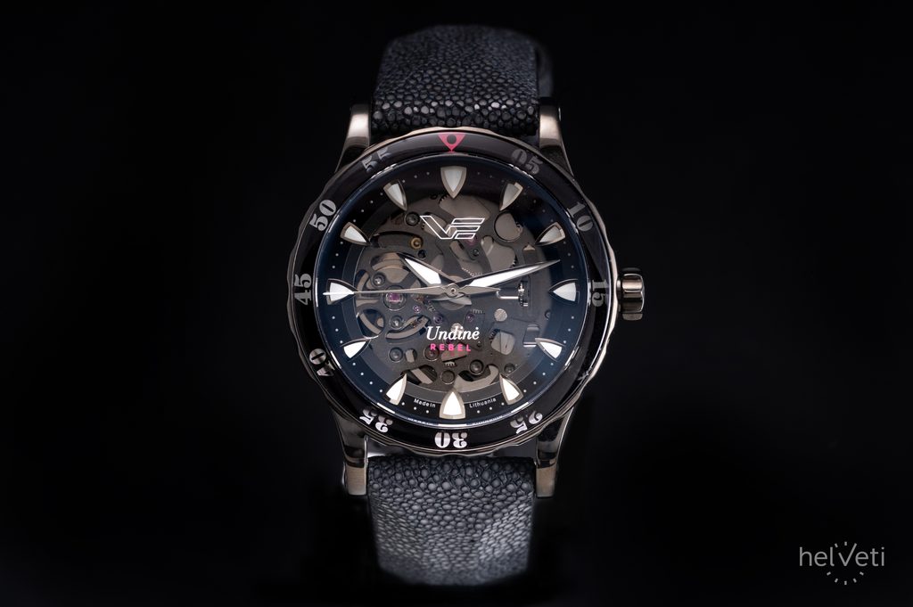 Ciferník s priemerom 39 mm a čiernou textúrou chráni odolné tvrdené minerálne sklíčko K1 s vnútornou antireflexnou úpravou, zatiaľ čo luminiscenčné značky na leštených kovových indexoch zaručujú vynikajúcu viditeľnosť aj pri slabom osvetlení a pripomínajú mesačný pôvab Undines. Vďaka vodotesnosti 200 m sú hodinky vhodné na plávanie, potápanie alebo rôzne vodné športy.