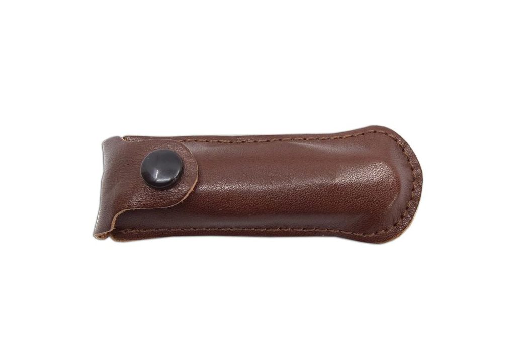 Nôž sa dodáva s hnedým koženým puzdrom (so zapínaním, bez spony na opasok).