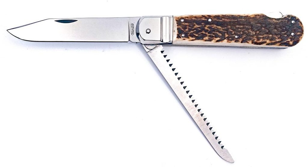 Poľovnícky nôž Mikov Hunter má čepeľ so zadnou poistkou vyrobenú z nehrdzavejúcej ocele 440A s tvrdosťou 56HRc a rukoväť z pravého jelenieho parohu. Čepeľ noža má ergonomický tvar pre pohodlné, ale aj bezpečné držanie. Okrem toho je model Hunter vybavený aj praktickou hrubou pílou.