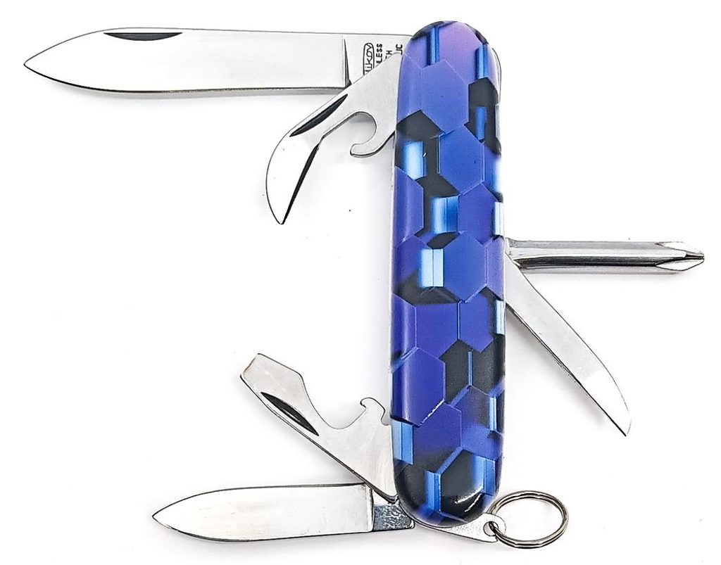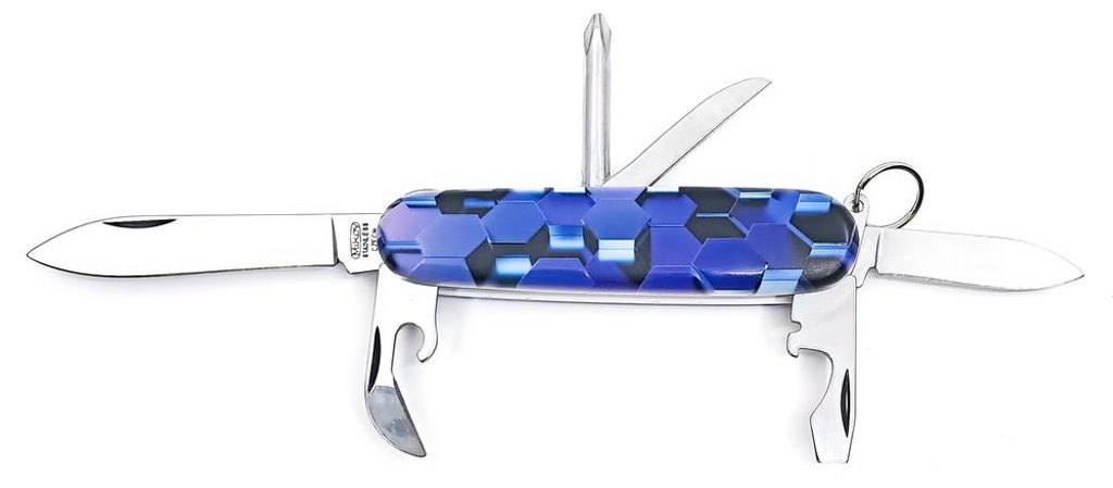 Stovka je tradičný nôž s mnohými užitočnými funkciami v modernom dizajne. Najväčšou výhodou noža je jeho veľkosť, vďaka ktorej sa pohodlne zmestí do každého vrecka, a preto je skvelým pomocníkom v každej situácii. Čepeľ noža je vyrobená z kvalitnej nehrdzavejúcej ocele 420 s tvrdosťou 53-55 HRc. Dizajnová čepeľ z vysokokvalitného plastu je vytlačená novou špeciálnou technológiou, ktorá zaručuje rôzne vzory tlače UV LED v kombinácii s 3D efektmi. Nôž obsahuje malú a veľkú čepeľ, otvárač na konzervy, bodec, krížový skrutkovač a otvárač na fľaše.